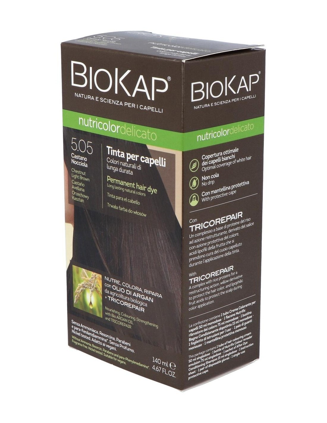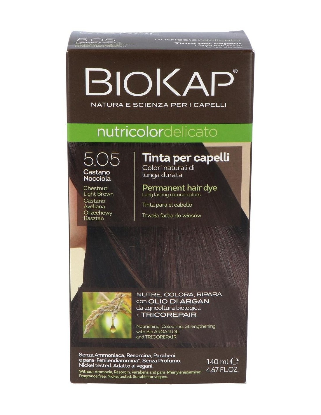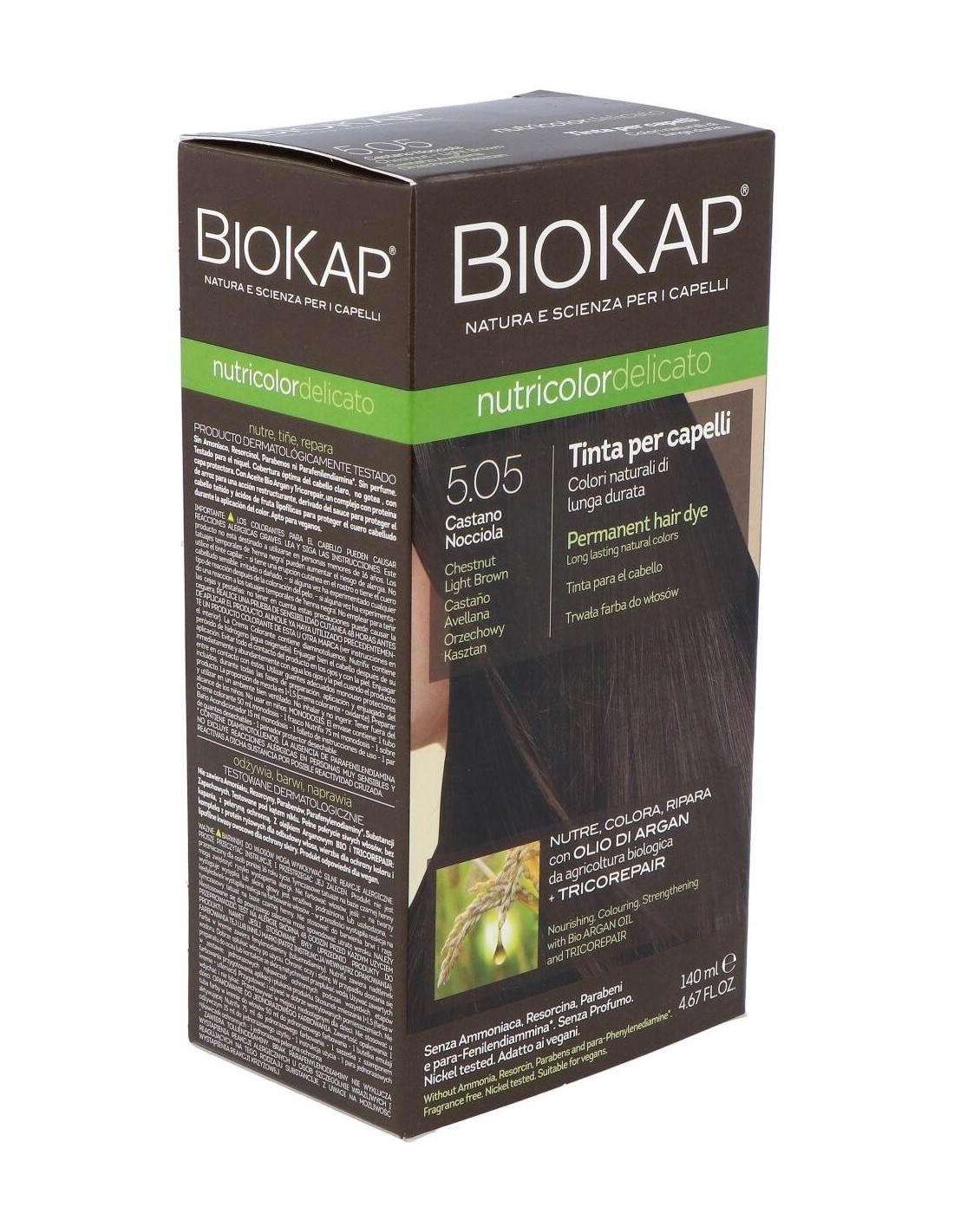El Delicato 5.05 Castaño Avellana 140 ml de Biokap es un tinte capilar para personas que buscan un color castaño avellana natural, formulado para una aplicación suave y un acabado uniforme.