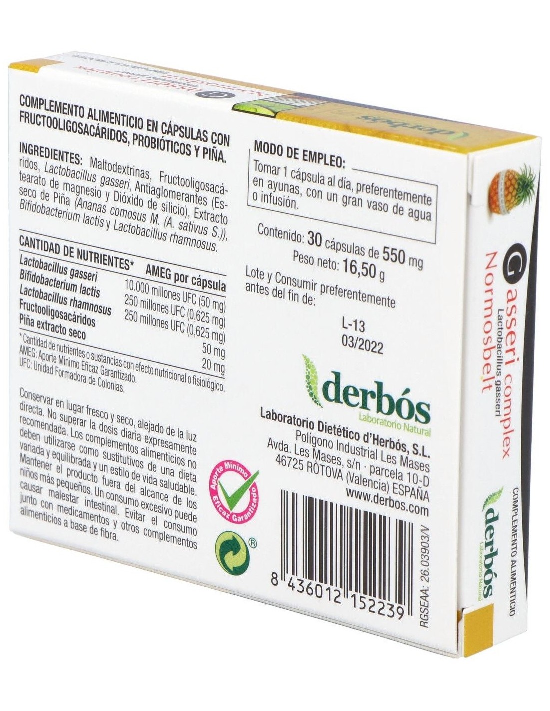 Gasseri Complex (Fórmula Mejorada) 30Cap. de Derbos es un suplemento diseñado para personas que buscan apoyar el bienestar digestivo, favoreciendo el equilibrio natural del sistema gastrointestinal mediante su fórmula optimizada.