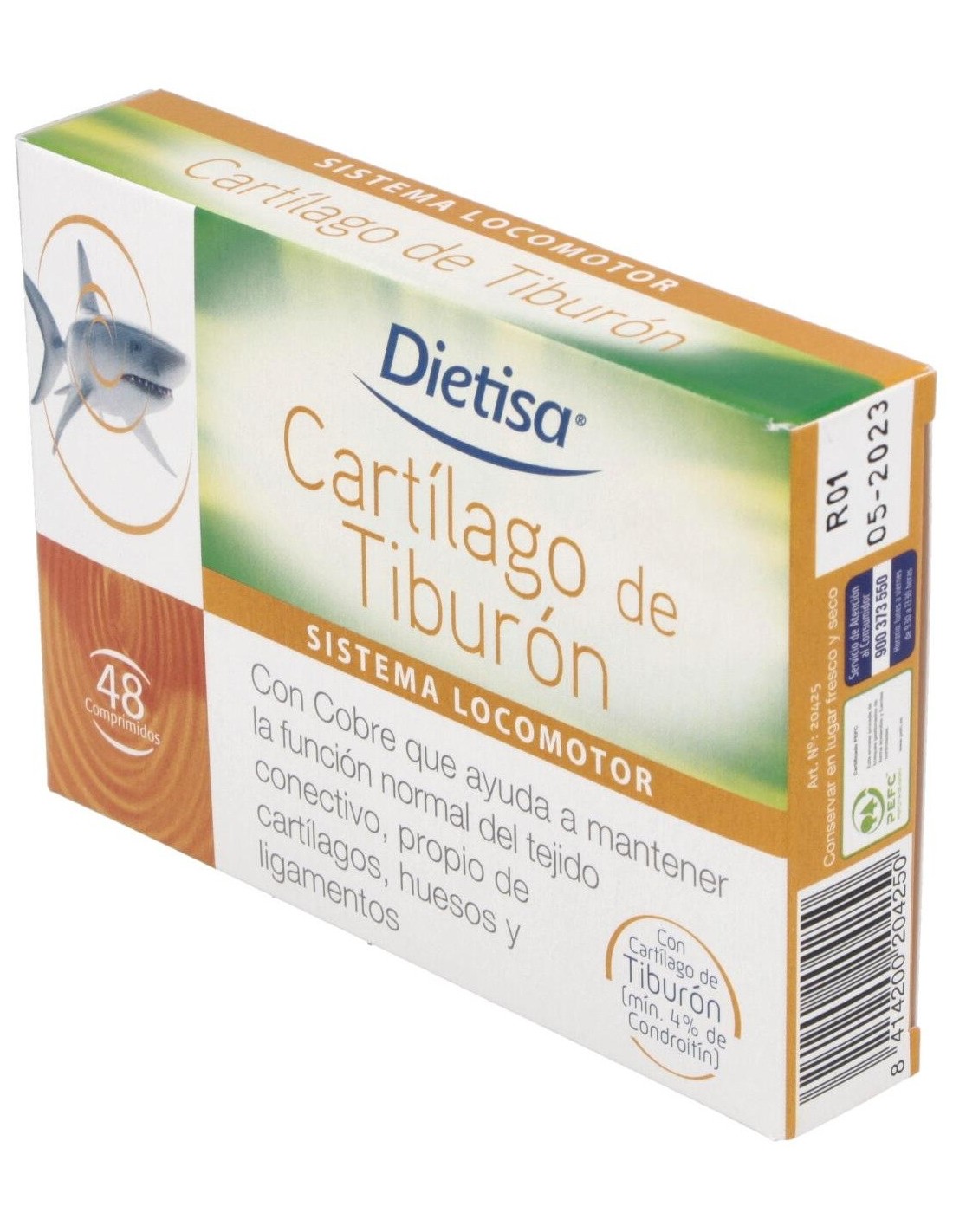 El Cartílago De Tiburón Envase 48 Comp. (16 Días) de Dielisa® está diseñado para personas que buscan complementar su dieta con ingredientes derivados del cartílago marino. Este producto es adecuado para quienes desean incorporar una fuente natural de compuestos presentes en el cartílago de tiburón en su rutina diaria.