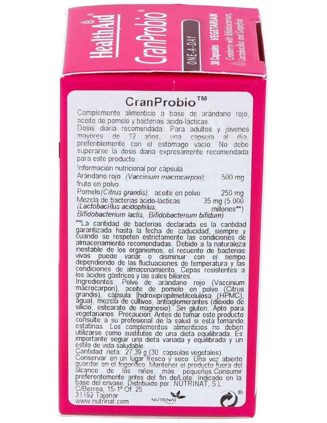 Cranprobio 30Vcap. Health Aid de Health Aid ofrece una combinación de componentes que contribuyen al cuidado integral, adaptándose a diferentes estilos de vida.