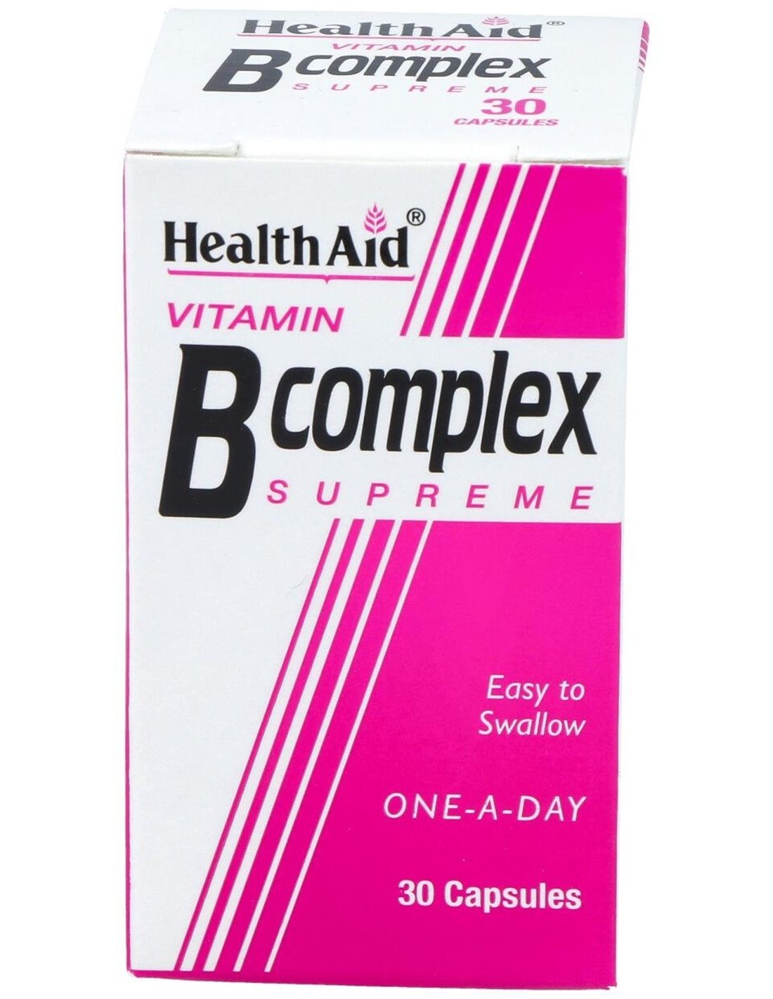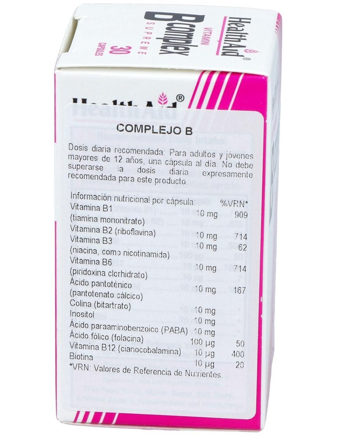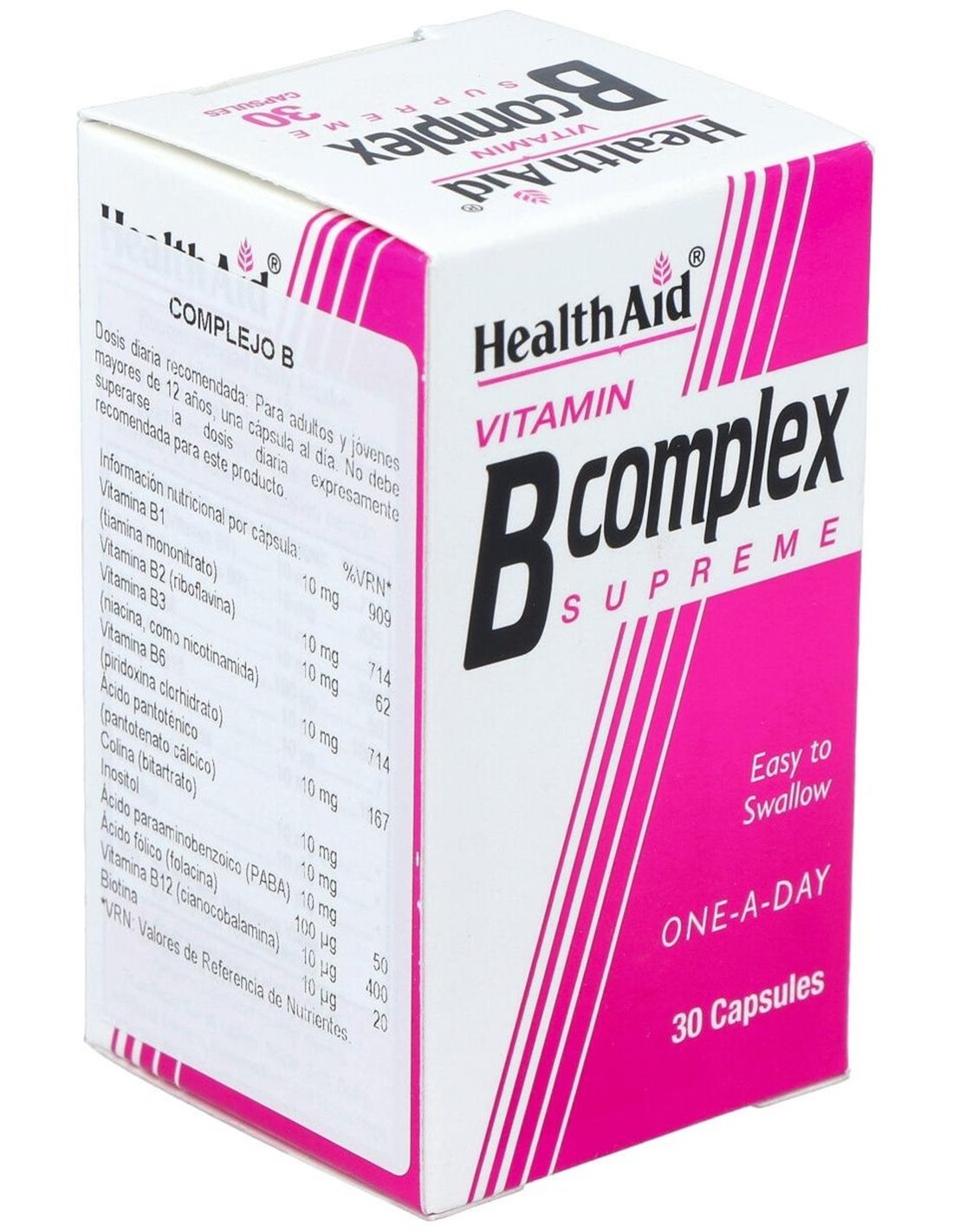 Vit B Complex 30Cap. Health Aid de Health Aid es un suplemento diseñado para personas que buscan complementar su ingesta diaria de vitaminas del complejo B. Es adecuado para quienes desean apoyar su bienestar general mediante una fórmula equilibrada y práctica.