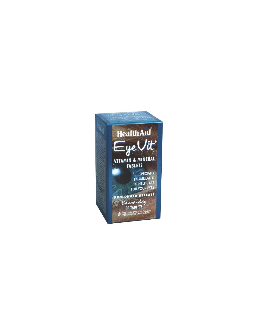 Eye-Vit 30Comp. Health Aid de Health Aid es un suplemento diseñado para personas que buscan apoyar el bienestar visual y mantener una función ocular saludable dentro de una rutina diaria equilibrada. Su formulación está pensada para quienes desean complementar su dieta con nutrientes específicos para la salud de los ojos.