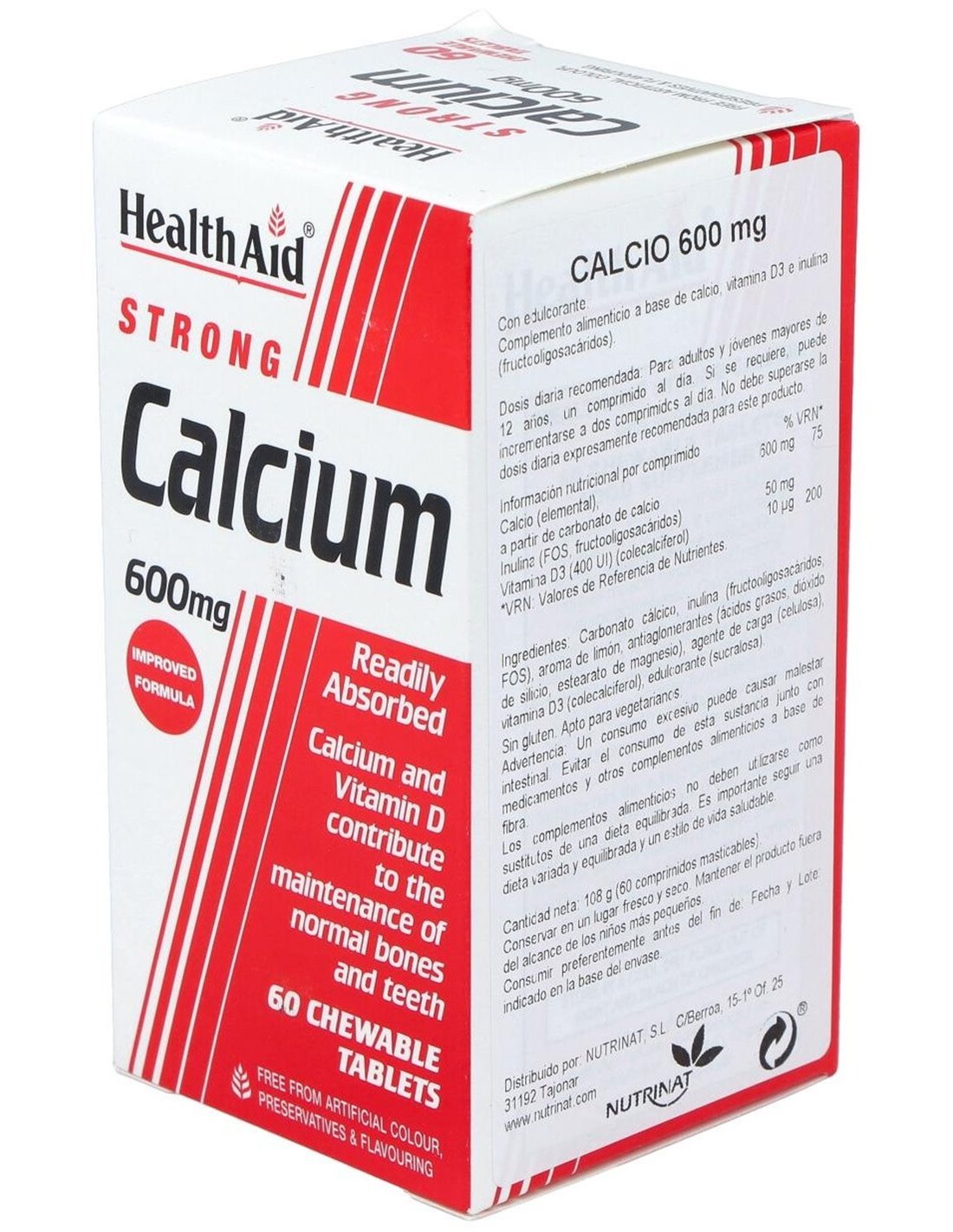 Calcio 600Mg. 60Comp. Mast. Health Aid de Health Aid ofrece una opción práctica para quienes buscan complementar su dieta con calcio, apoyando el mantenimiento de la salud ósea de forma accesible y controlada.