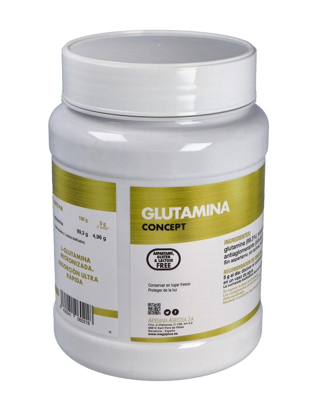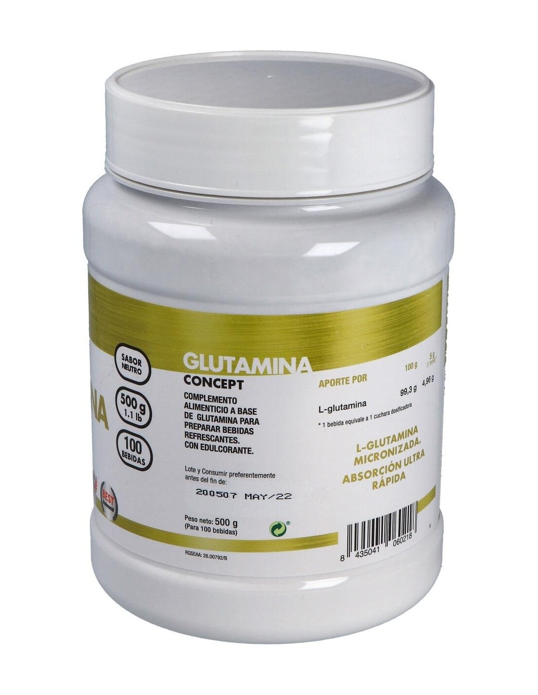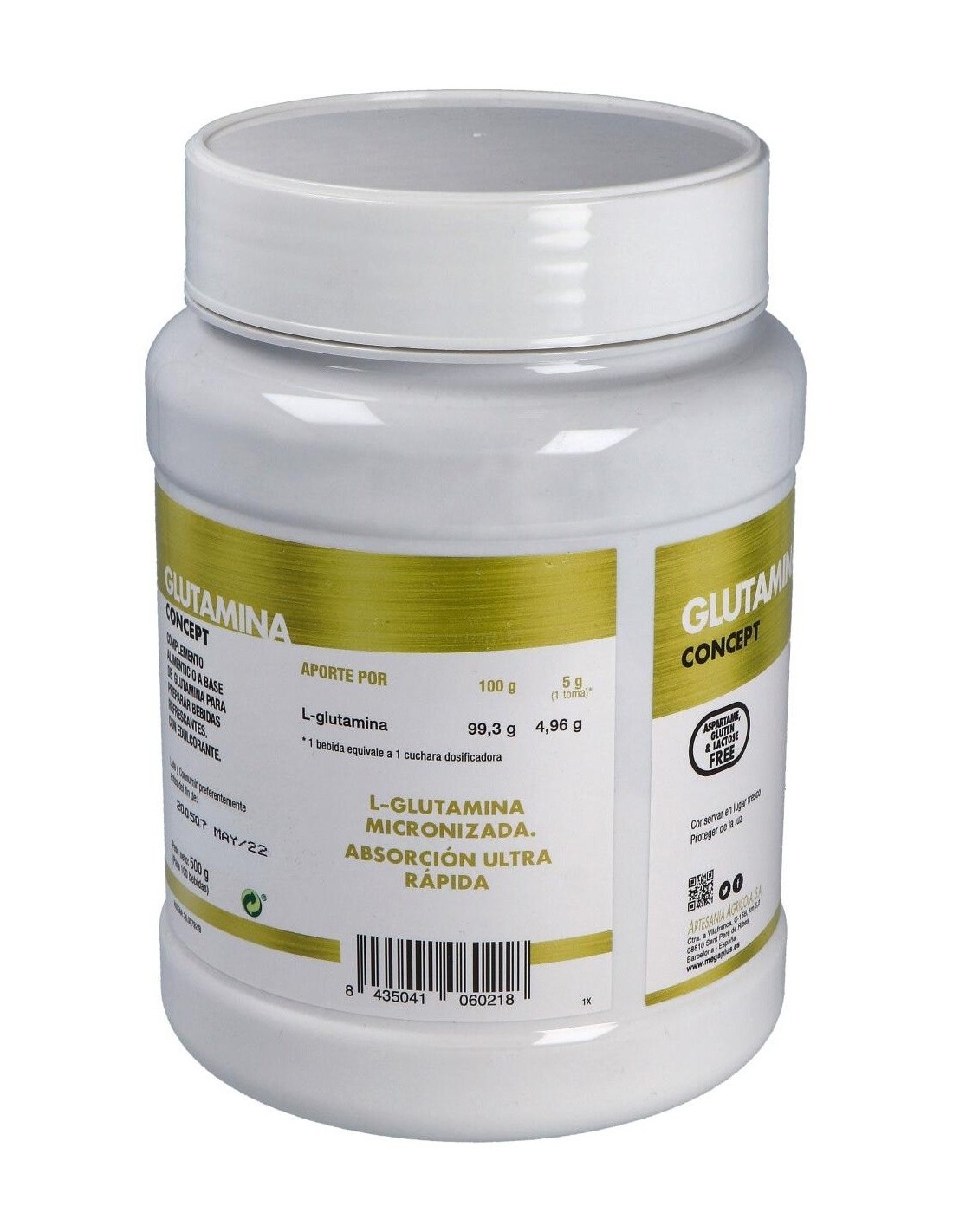 Favorece la síntesis proteica y previene el catabolismo muscular en situaciones de estrés oxidativo. GLUTAMINA CONCEPT 500gr.
