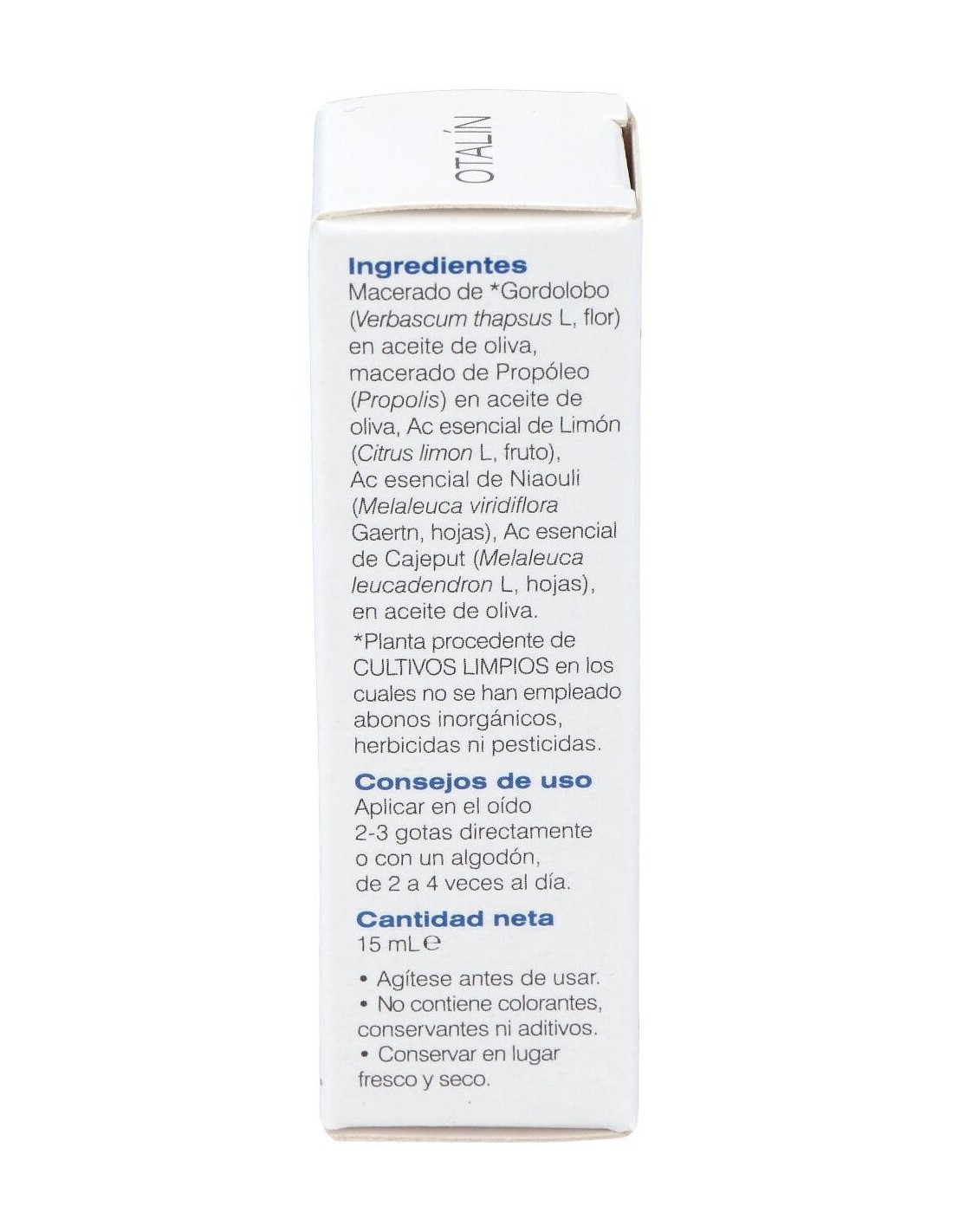 El producto está elaborado con ingredientes de origen natural, cuidadosamente seleccionados para ofrecer una experiencia de uso agradable y segura. Su diseño en formato gotas facilita la aplicación directa en el oído, adaptándose a las necesidades diarias de cuidado personal.