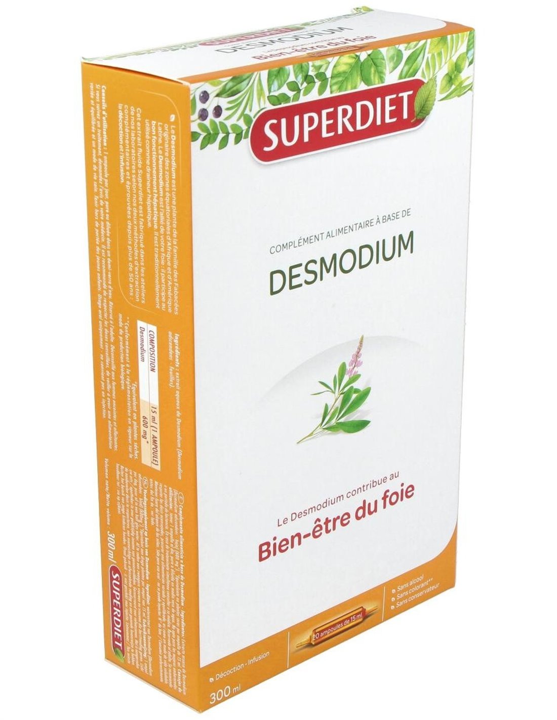 El Desmodium 20Amp. de Superdiet está elaborado con extractos vegetales cuidadosamente seleccionados para mantener la calidad y pureza del producto. Su formato en ampollas facilita su transporte y uso en diferentes momentos del día, adaptándose a estilos de vida activos.