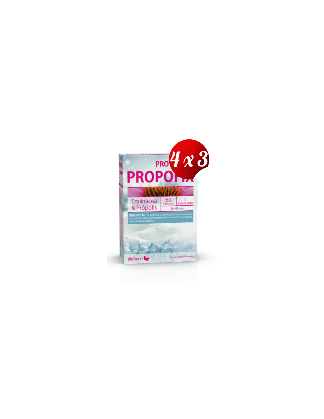 El Pack 4x3 uds Propofix Protect 60Cap. de Dietmed está diseñado para personas que buscan un complemento alimenticio que apoye su bienestar diario. Este pack ofrece una presentación práctica para quienes desean mantener una rutina constante con un producto formulado para contribuir al equilibrio general.