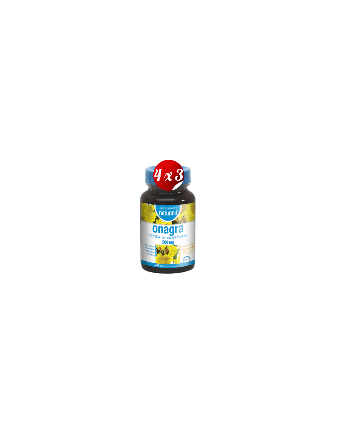 - Cada perla contiene 500 mg de aceite de onagra, que contribuye a la ingesta diaria de ácidos grasos omega-6.
