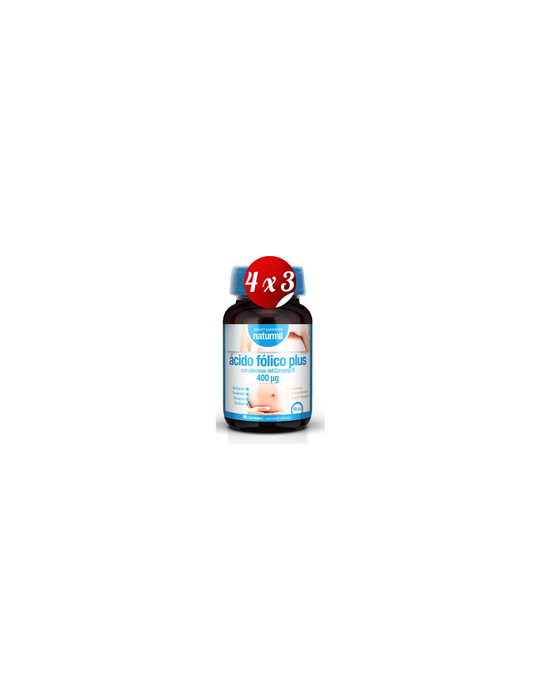 Pack 4x3 uds Acido Folico Plus 400µg 90Comp. de Dietm