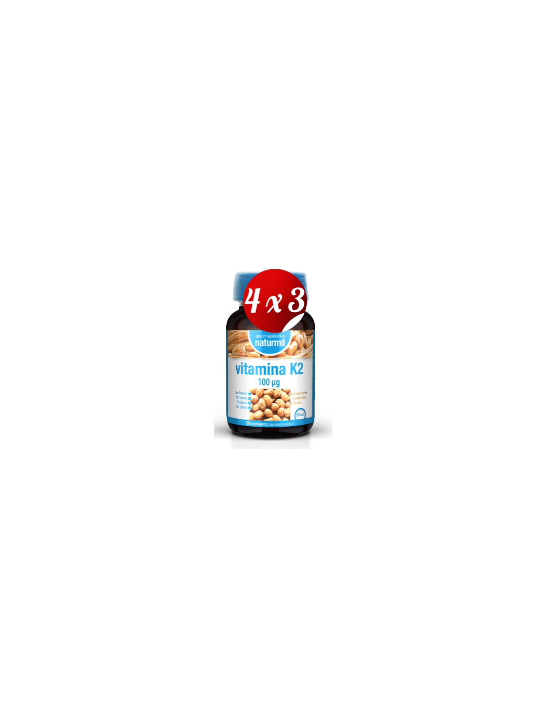 El Pack 4x3 uds Vitamina K2 60Comp. de Dietmed es un suplemento para adultos que contribuye al mantenimiento de huesos y la salud cardiovascular, gracias a su fórmula con vitamina K2 en dosis adecuadas para uso diario.