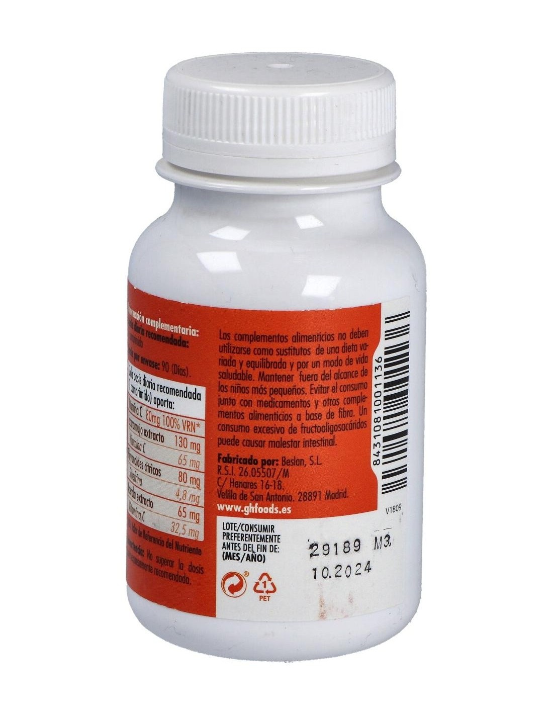 Vitamina C Complex 90Comp. de Ghf ofrece una opción práctica para complementar la ingesta de vitamina C, apoyando hábitos saludables de manera constante.