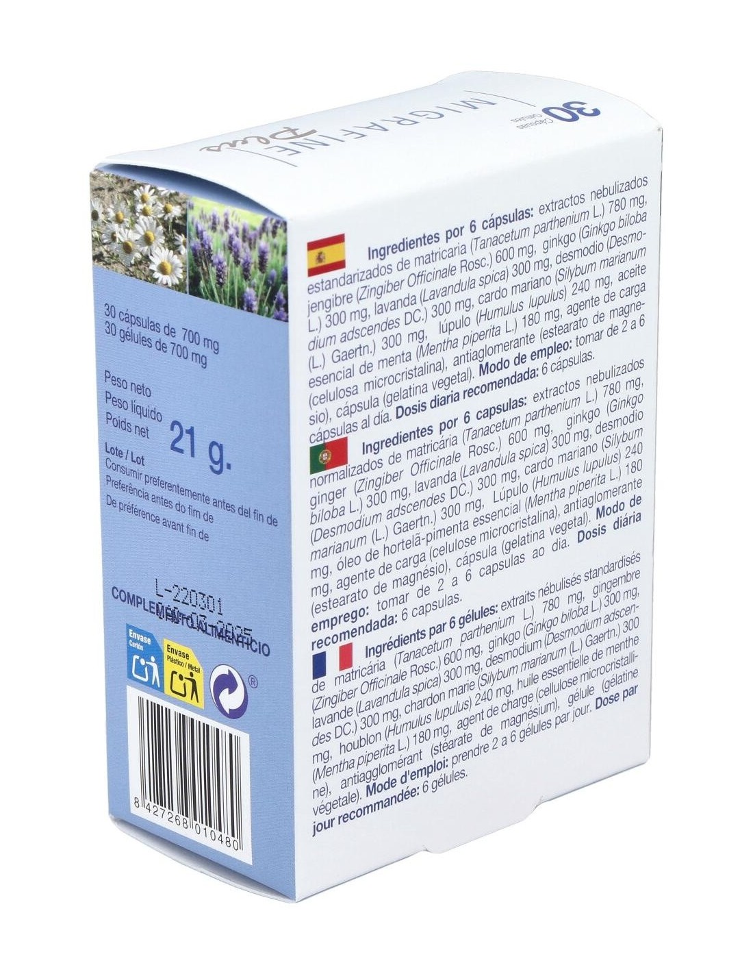 Las cápsulas de Migrafine Plus están formuladas con ingredientes cuidadosamente seleccionados para optimizar su absorción y eficacia. Su presentación en envase de 30 unidades permite un uso continuo y práctico, adaptándose a diferentes estilos de vida.