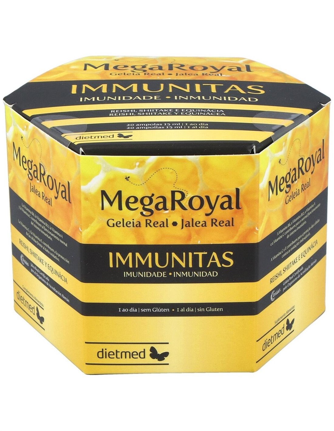 Megaroyal Immunitas 20Amp. de Dietmed ofrece una opción confiable para quienes buscan complementar su alimentación con un producto pensado para apoyar el bienestar general.