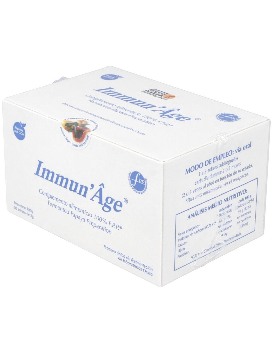 Immun Age Fpp Maxi 60Sbrs. de Osato es un suplemento nutricional para adultos que apoya el bienestar inmunológico mediante una fórmula con ingredientes seleccionados para complementar la dieta diaria.