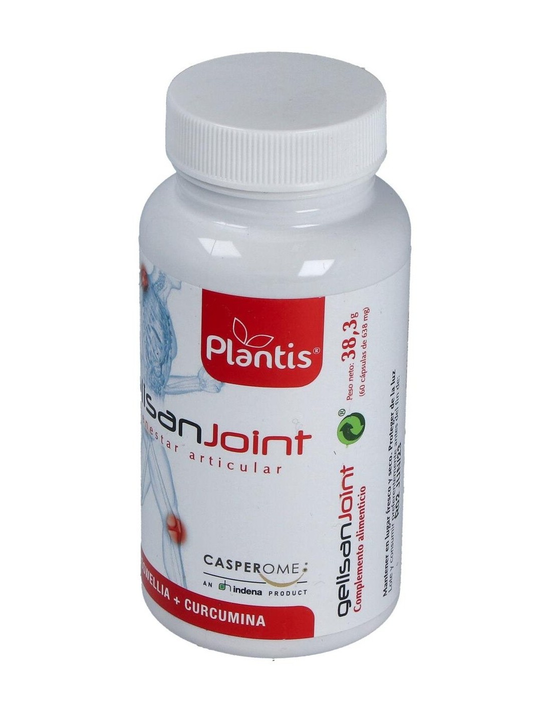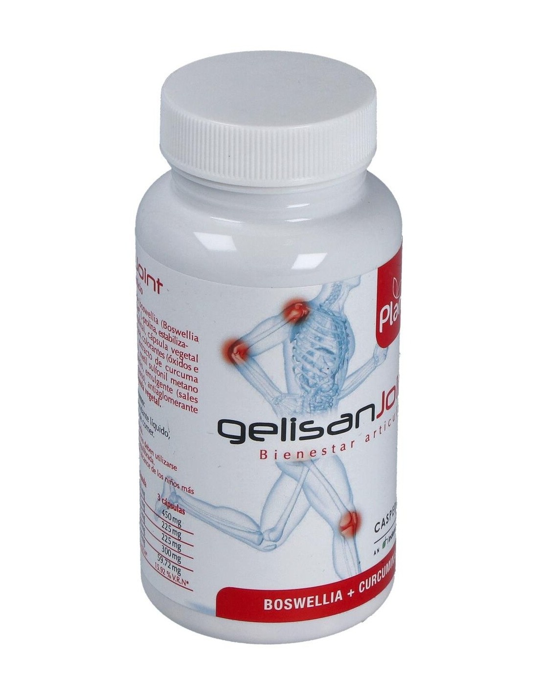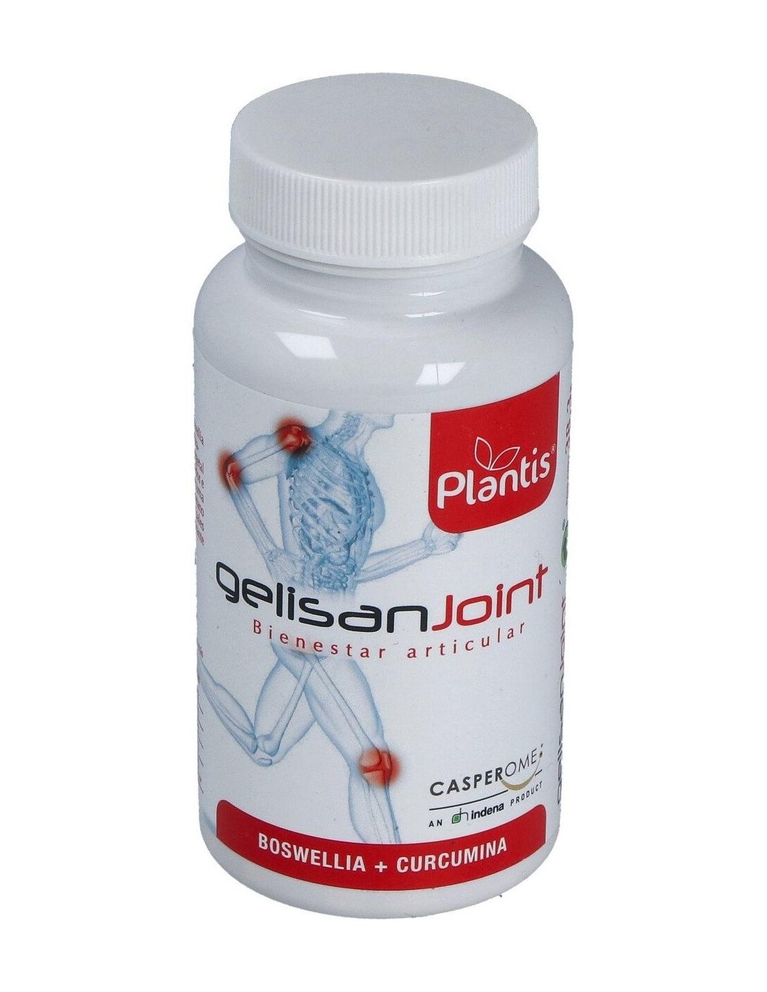 Gelisan Joint de Plantis es un compuesto específico para mejorar las articulaciones: reúne extracto de Boswellia y extracto de Curcuma que se han mostrado útiles para disminuir la inflamación y por tanto el dolor. La fórmula se ve reforzada con la incorporación de Metil Sulfonil Metano (MSM), L-prolina y Magnesio que contribuyen a la mejora de la movilidad de la articulación.Gelisan Joint se ha formulado con extracto de Boswellia - Casperome® que es un extracto altamente purificado, obtenido de la resina de goma de Boswellia serrata.Los extractos de Boswellia se han mostrado eficaces en diversos procesos inflamatorios (intestino, articulaciones, huesos, vías respiratorias y cerebro), teniendo un mecanismo de acción que modula la respuesta inflamatoria del organismo.El extracto de raíz de Curcuma longa L., de Gelisan Joint está estandarizado en curcuminoides (95%) y también tienen propiedades antiinflamatorias que complementan con las de Boswellia. Su carácter antioxidante combate la degradación articular por parte de los radicales libres.El MSM, compuesto orgánico sulfurado, actúa como antiinflamatorio y ayuda al cuerpo a recuperar las células y las estructuras de tejidos dañadas, así mismo que mitiga el dolor en inflamación de articulaciones, tendones, bolsa sinovial y en otros problemas del sistema motriz.Composición activa por cápsula: