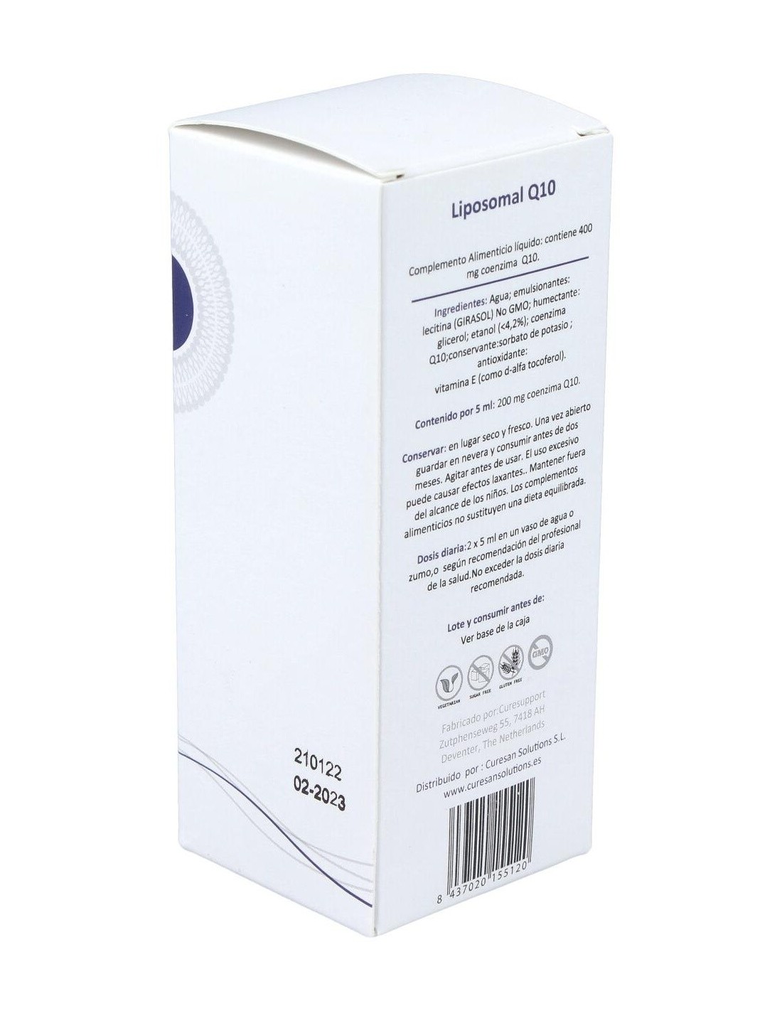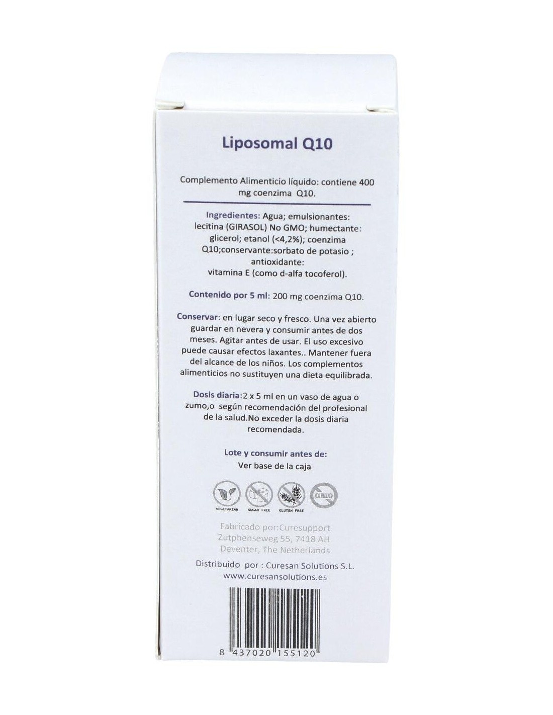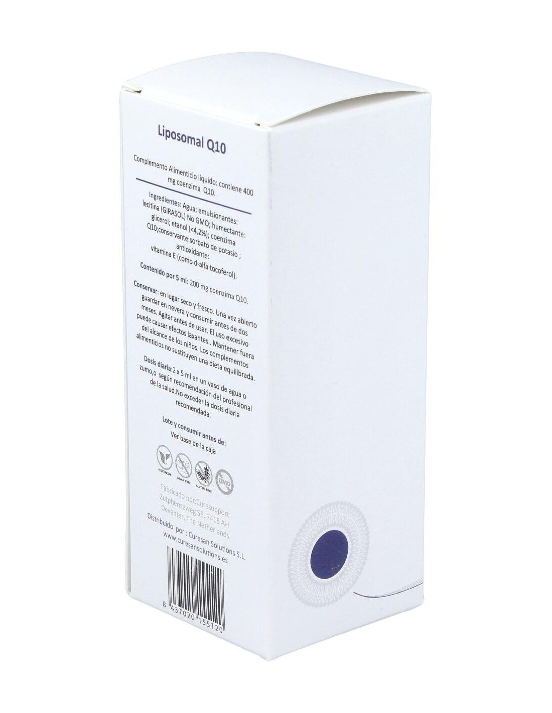 Agua: emulsionante: lecitina (girasol): humectante: glicerol: alcohol (<4,2%): Coenzima Q10: conservante: sorbato de potasio: antioxidante: vitamina E (como d-alfa tocoferol). Alc .: <4,2% vol.
