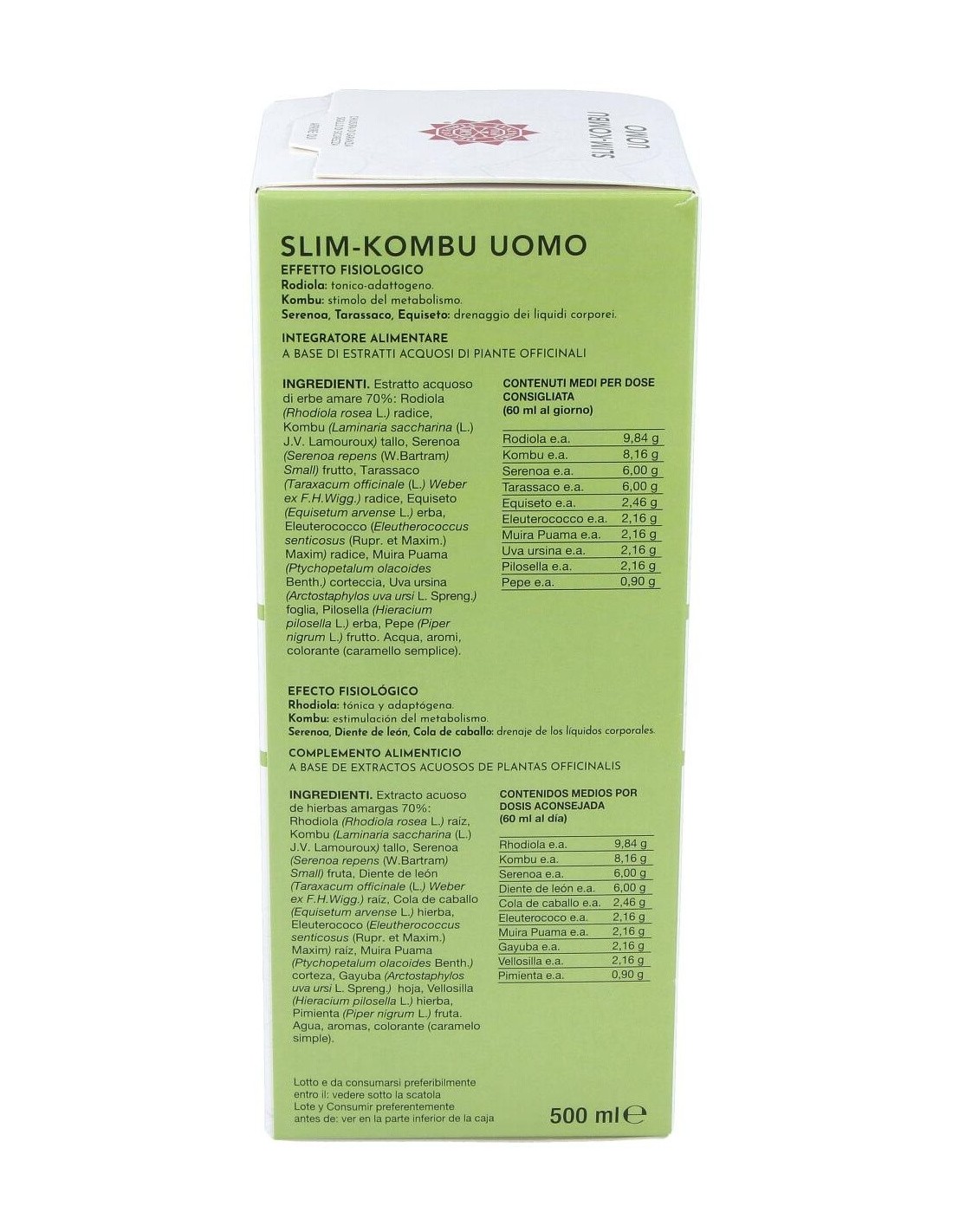 Rhodiola rosea, Kombu, Sabal, Diente de león, Cola de caballo, Eleuterococo, Muira Puama, Gayuba, Vellosilla, Pimienta negra.