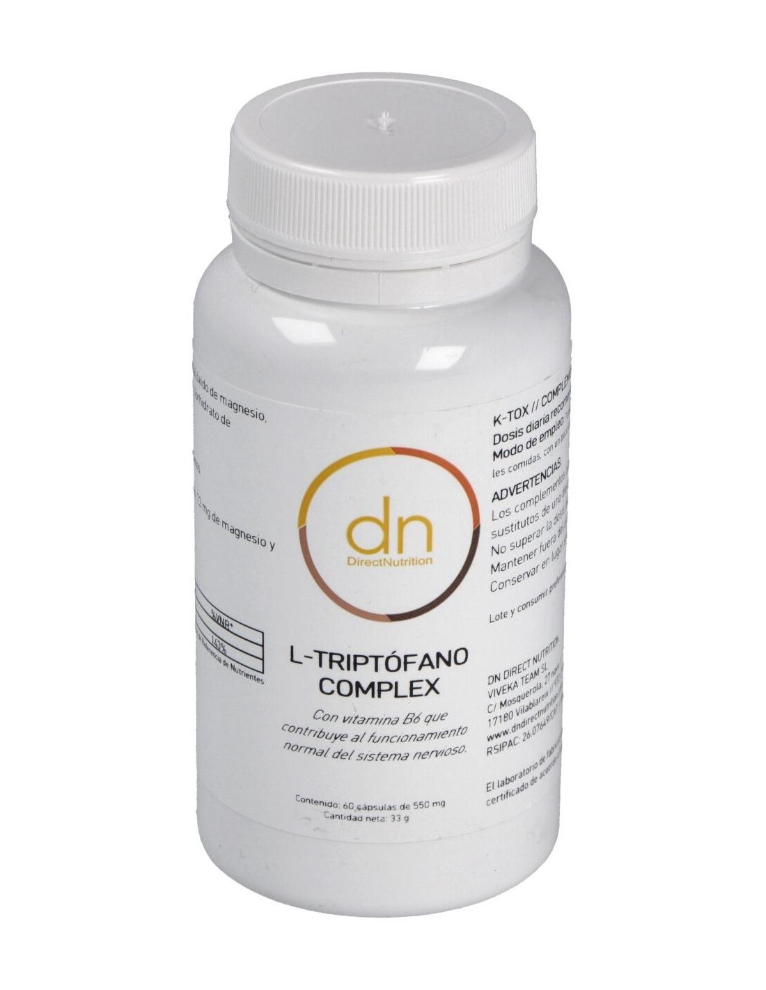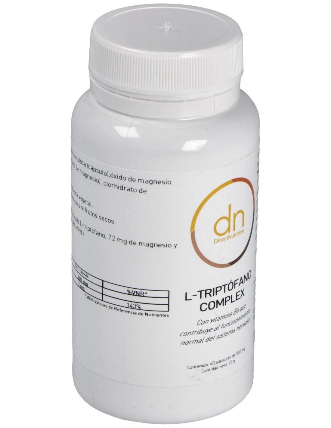 L-Triptofano Complex 60Vcap. de Direct Nutrition es un suplemento diseñado para personas que buscan apoyar su bienestar diario mediante una fórmula específica que contribuye al equilibrio natural del organismo. Es adecuado para quienes desean complementar su dieta con ingredientes seleccionados para favorecer un estado de calma y relajación.