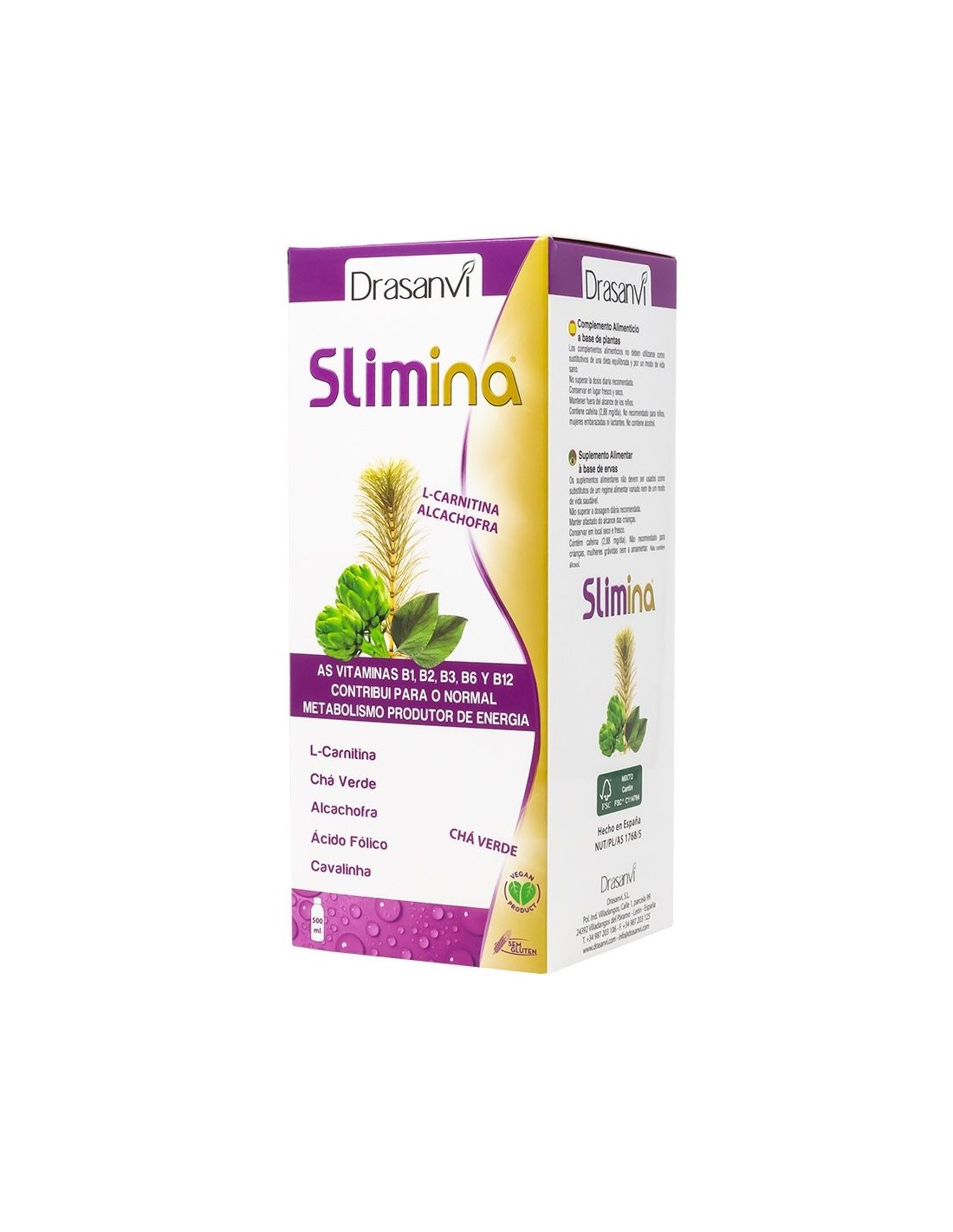Ingredientes:Agua, Fructosa, Fructooligosacáridos (400 mg), Extracto fluido de Cola de Caballo (Equisetum arvense L., Silicio 1% )(200 mg), Extracto fluido de Rábano Negro (Raphanus sativus L. var. nigra (Mill.) Kerner, Glucosinolatos 0,5%)(192 mg), Extracto fluido de Sauco(Sambucus nigra L., Flavonoides 0,3%)(192 mg), Extracto fluido de Romero(Rosmarinus officinalis L., Flavonoides 1%)(192 mg), Extracto seco de Boldo (Peumus boldus Molina, Boldina 0,5%)(96 mg), Extracto seco de Fumaria (Fumaria officinalis L., protopina1%)(80 mg), Extracto seco de Alcachofa (Cynara scolymus L., Cinarina 2.5%)(72 mg), Extracto seco de Naranja (Citrus aurantium L., sinefrina 6%)(48 mg), Extracto seco de Bardana (Arctium lappa L, Inulina 50%)(48 mg), Extracto seco de Maíz (Zea mays L, saponidos 10%)(48 mg), Extracto seco de Té Verde (Camellia sinensis (L.) Kuntze, Cafeína 6%)(48 mg), Extracto seco de grama (Elymus repens L. Gould, Inositol 3%)(48 mg), Aroma (Aroma de limón), Acidulante (Ácido cítrico), Conservador (Sorbato potásico), Vitamina B3 (Nicotinamida)(16 mg), L-carnitina(Tartrato de L-Carnitina)(10 mg), Vitamina B6(Clorhidrato de piroxidina)(1,4 mg), Vitamina B2 (Riboflavina)(1,4 mg), Vitamina B1 (Clrohidrato de tiamina)(1,1 mg), Ácido Fólico(Ácido Pteroil-L-Glutámico)(200 µg), Vitamina B12 (Cianocobalamina)(0,0025 mg). Modo de empleo:Tomar 20 ml al día en ayunas. Presentación:Envase de 500 ml.Recomendaciones y advertencias:No contiene gluten.