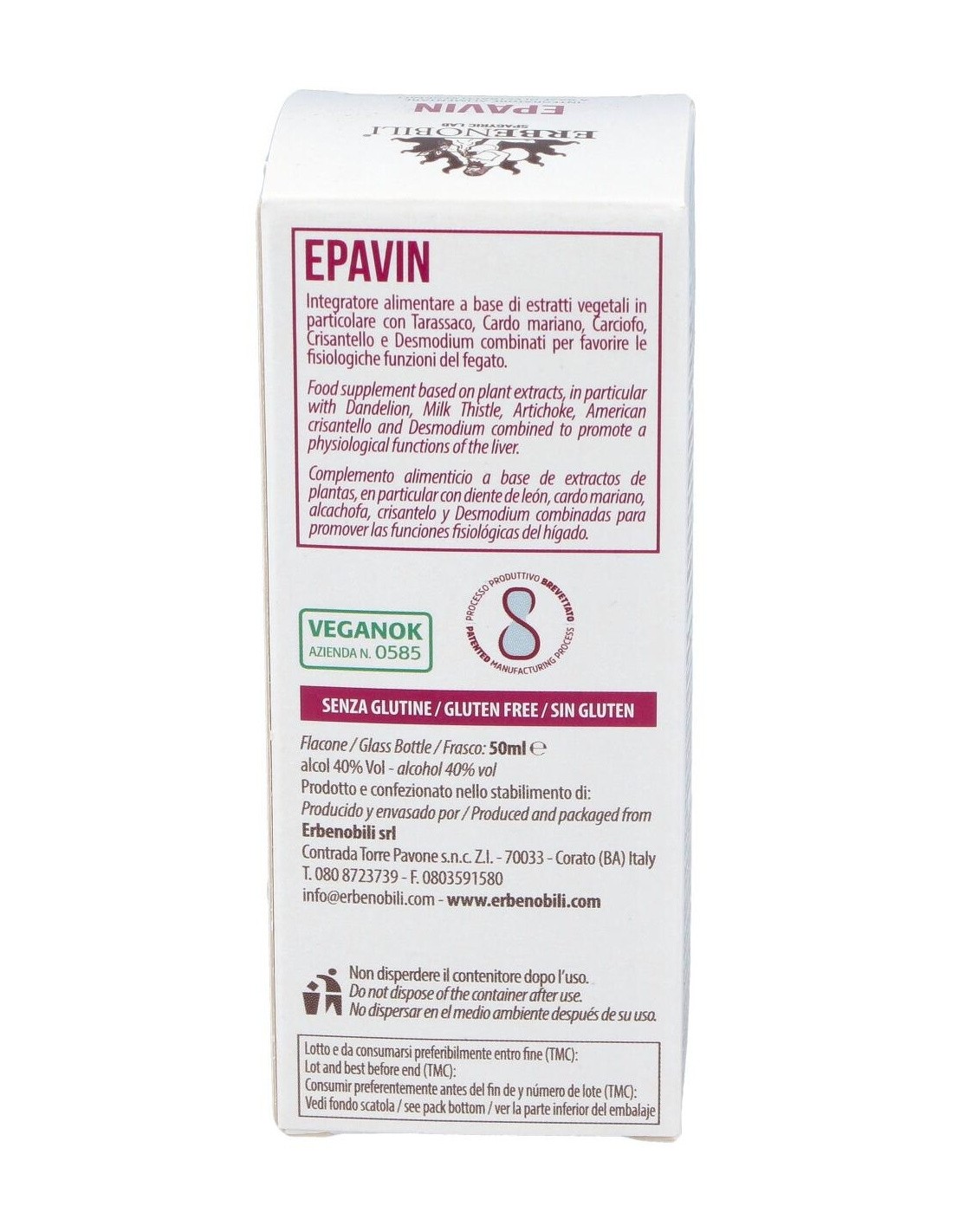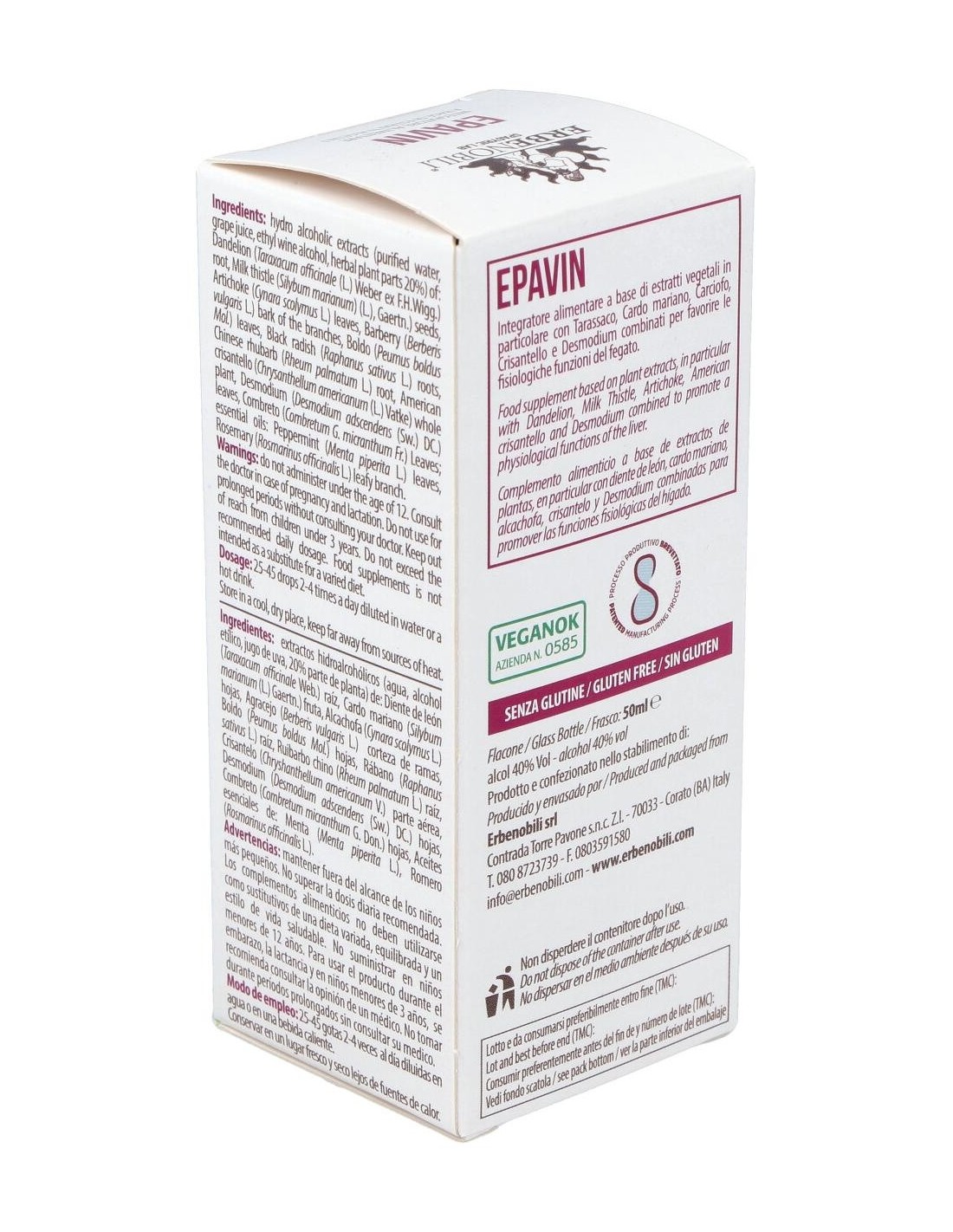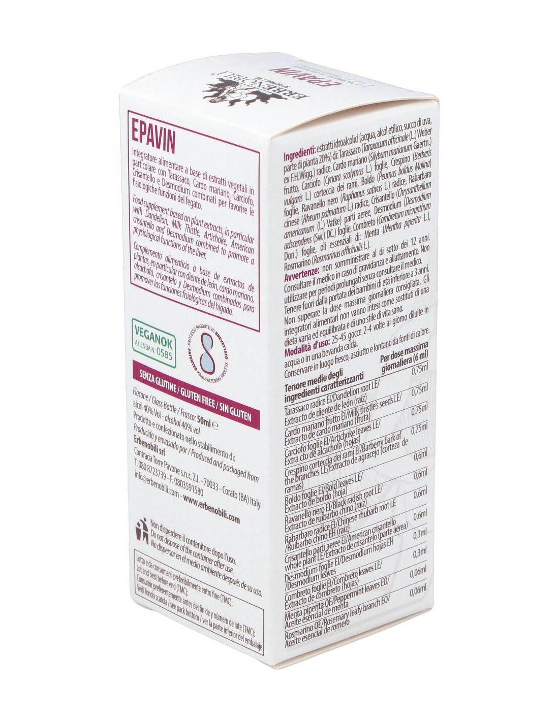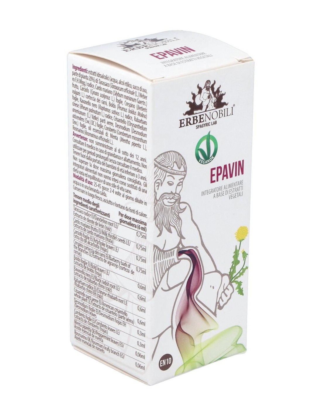 Extractos hidroalcohólicos (agua, alcohol etílico, jugo de uva, parte de la planta 20%) de: Diente de león (Taraxacum officinale Weber) raíz, Cardo mariano (Silybum marianum Gaertn.) fruto, Alcachofa (Cynara scolymus L.) hojas, Agracejo (Berberis vulgaris L.) hojas, Boldo (Peumus boldus Molina) hojas, Rábano negro (Raphanus sativus L.) raiz, Ruibarbo chino (Rheum palmatum L.) raíz, Manzanilla (Chrysantellum americanum Vatke) partes aéreas, Cúrcuma (Curcumalonga L.) rizoma, Combreto (Combretum micranthum Don.) hojas, aceites esenciales de: Hierbabuena (Mentha piperita L.), Romero (Rosmarinus officinalis L.).