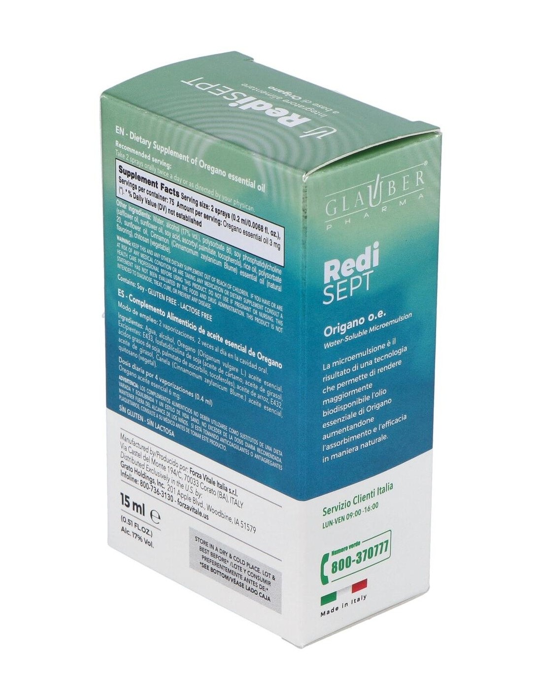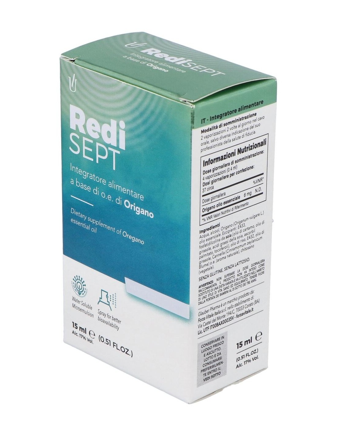 Agua, alcohol, Orégano (Origanum vulgare L.) aceite esencial. Excipientes: E433, fosfatidilcolina de soja (aceite de cártamo, aceite de girasol, ácidos grasos de soja, palmitato de ascorbilo, tocoferoles), aceite de arroz, E432, aceite de girasol, Canela (Cinnamomum zeylanicum Blume.) aceite esencial, quitosano (vegetal).