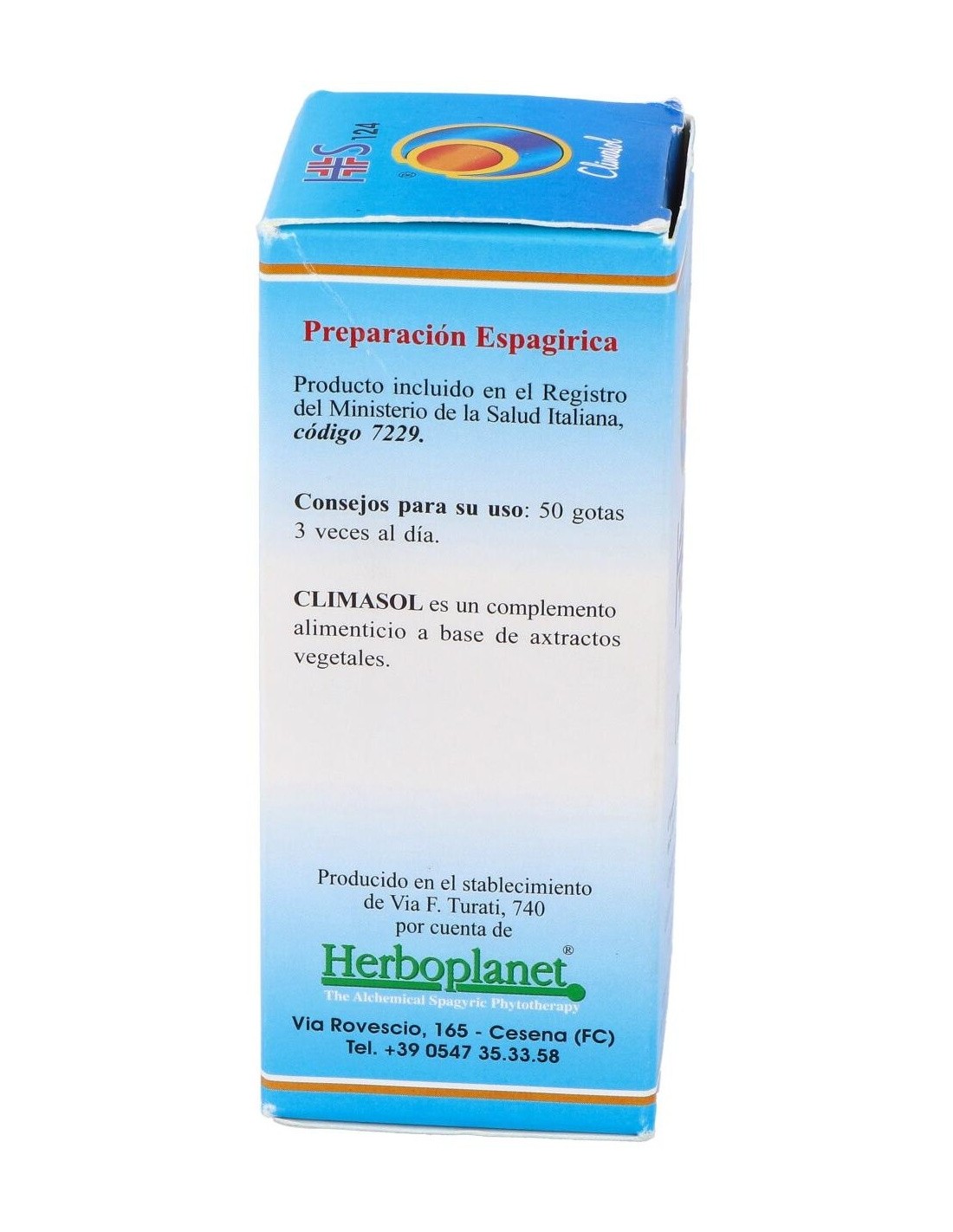 Climasol de Herboplanet es un complemento alimenticio indicado en casos de amenorrea, dismenorrea, espasmos uterinos, sofocos, nerviosismo de la menopausia y todos los trastornos asociados a la dificultad de acostumbrarse a la nueva situación hormonal (menopausia).Principios activos: