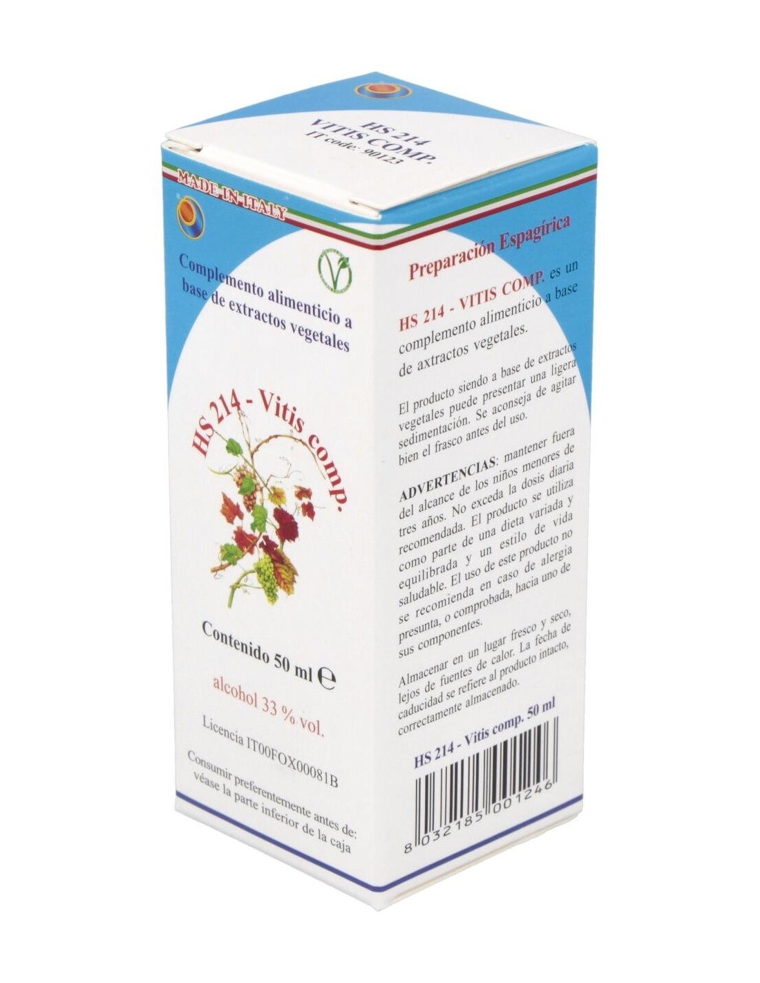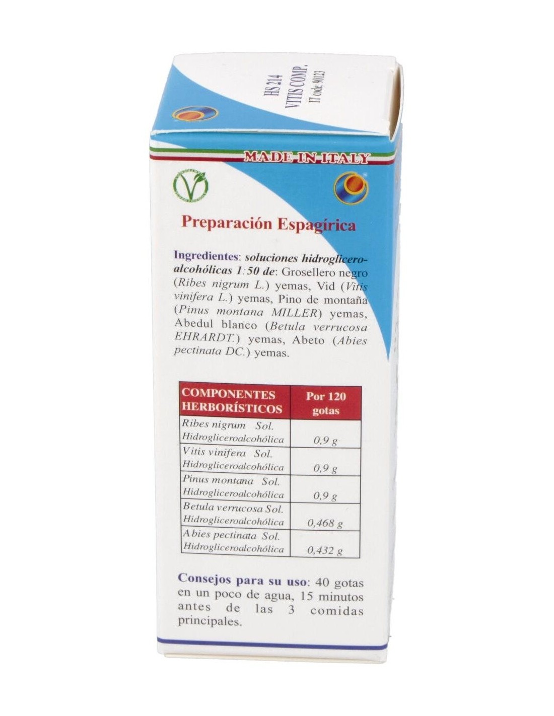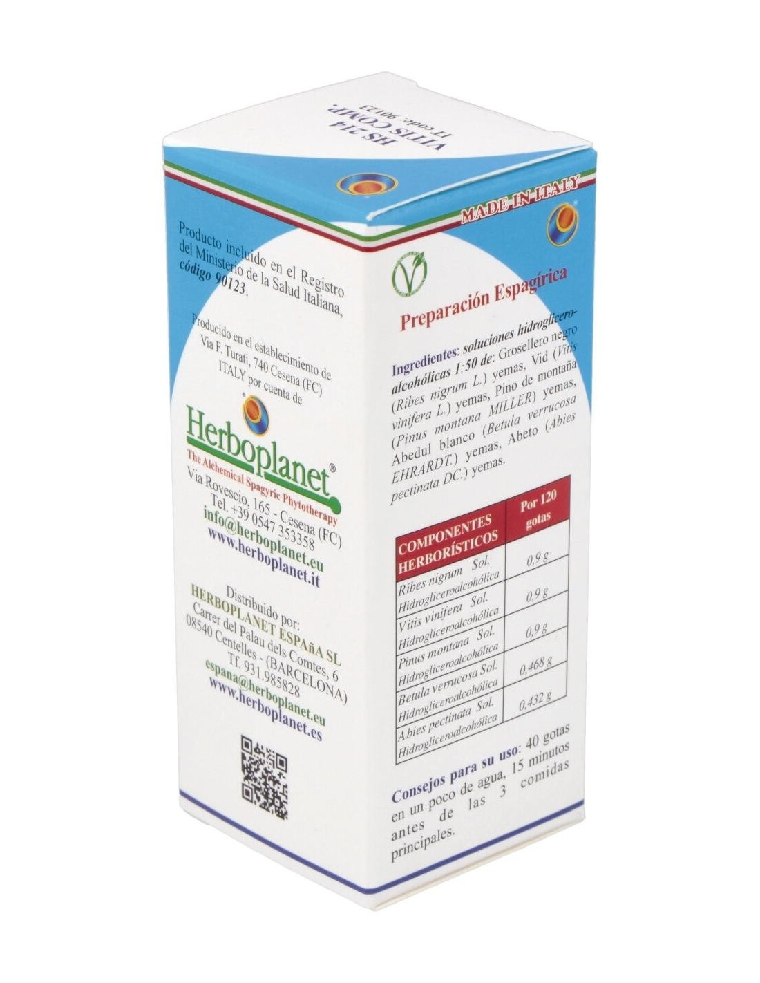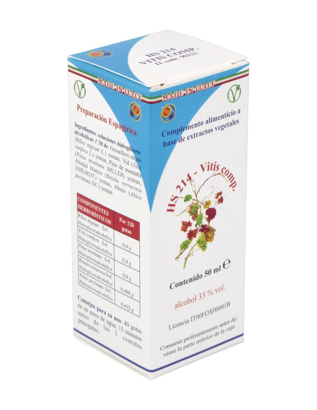 HS 214 - Vitis Comp de Herboplanet es un complemento alimenticio que actúa como drenante y regenerante de todas las afecciones artrósicas y reumáticas, rarefacción de la trama ósea. Coadyuvante en la reconstrucción del cartílago, en todas las enfermedades artrósicas y para la consolidación de las fracturas.Principios activos: