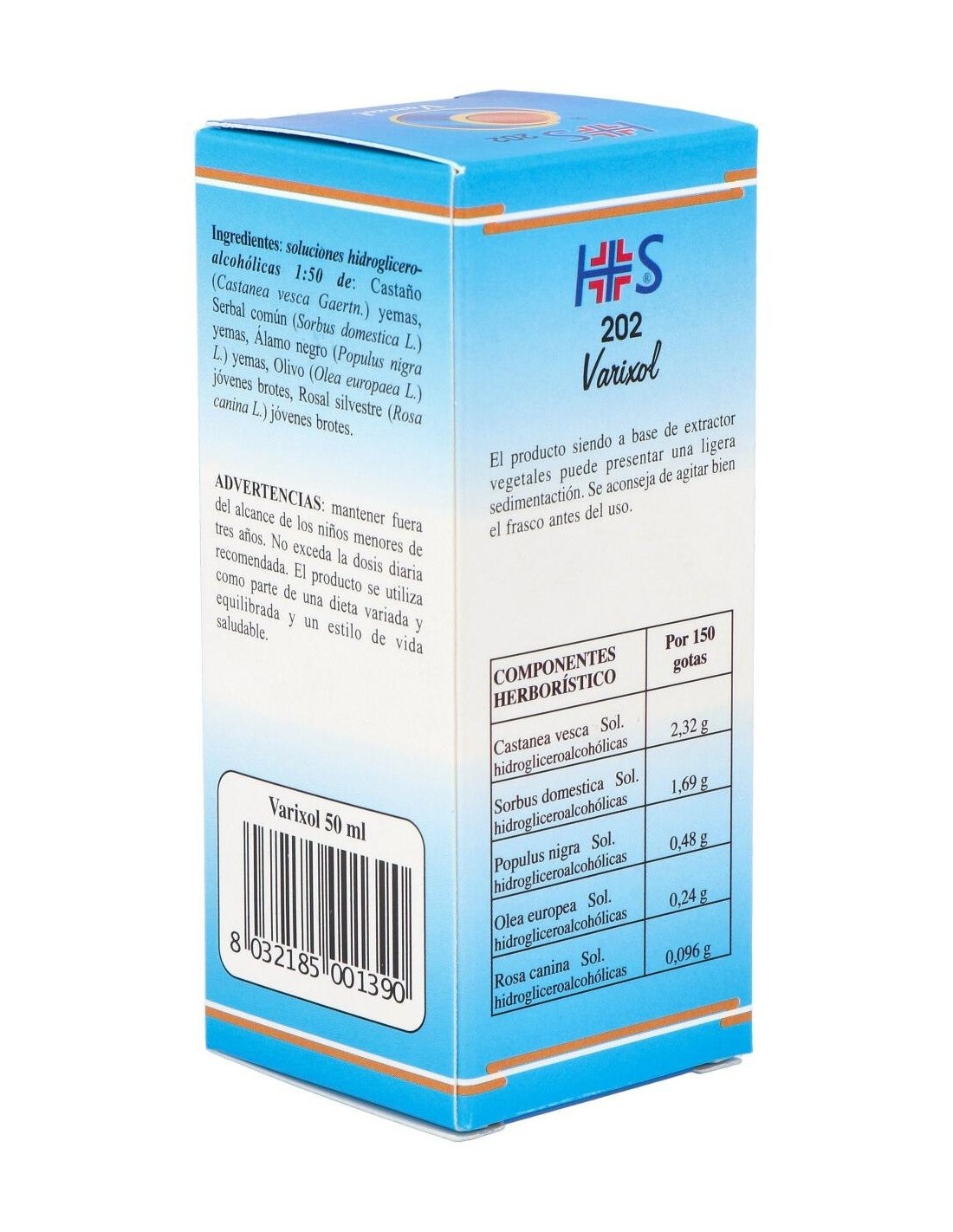 Ingredientes por 150 gotas:Castaño (Castanea vesca) yemas 2,320 g, Serbal común (Sorbus domestica) yemas 1,692 g, Álamo negro (Populus nigra) yemas 0,483 g, Olivo (Olea europaea) jóvenes brotes 0,242g, Rosal silvestre (Rosa canina) jóvenes brotes 0,096 g.Modo de empleo:Tomar 30-40 gotas, en poca agua, 3 veces al día.Presentación:Envase de 50 ml.
