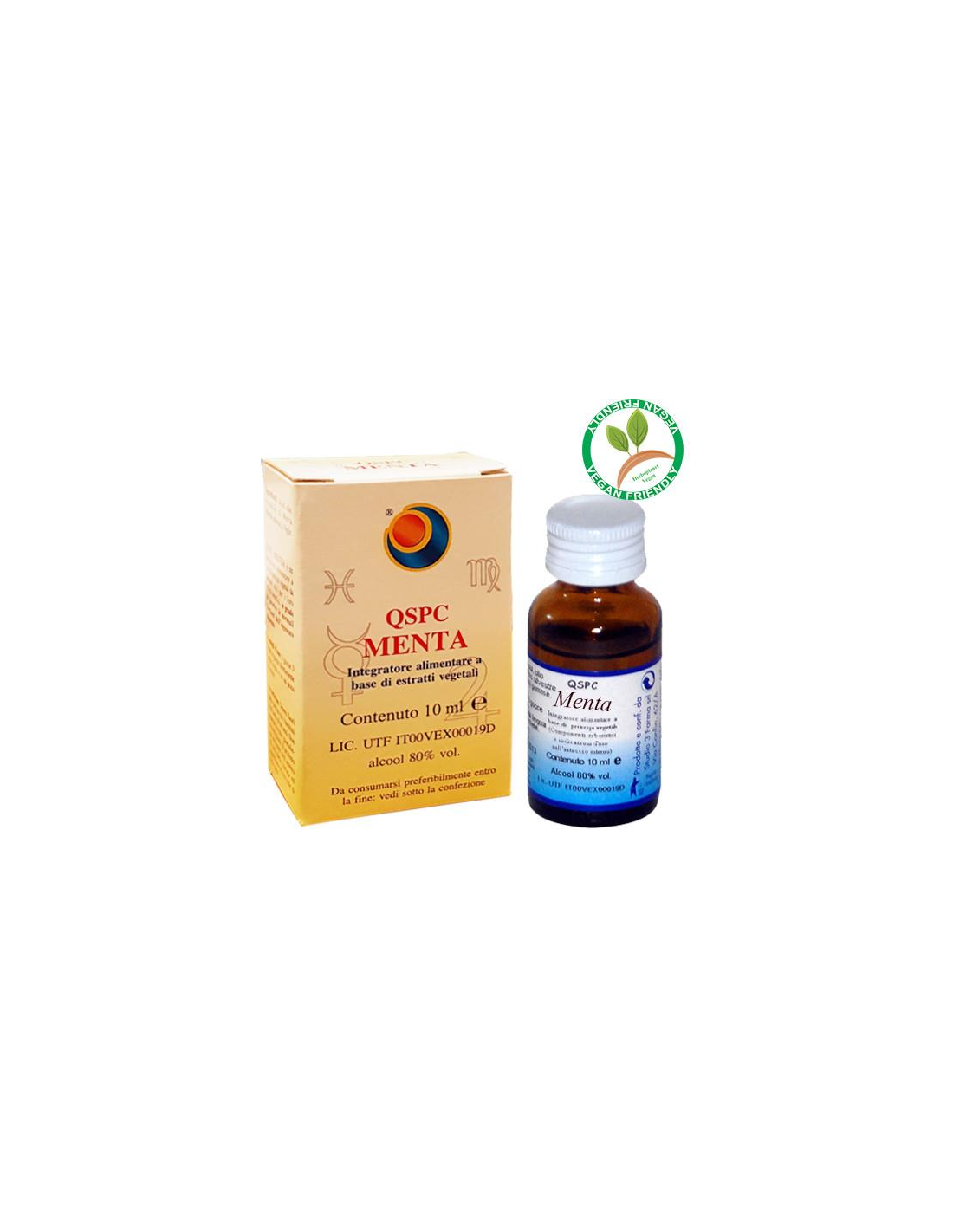 QSPC Menta es obtenida de la semilla de la planta según el método canónico espagírico. El alcohol contenido en la quintaesencia, es el alcohol obtenido de la propia planta de la que se ha obtenido el principio sulfúreo (aceite esencial purificado) y la sal fija. Las propiedades bactericidas de la menta se han mostrado particularmente eficaces en la neutralización de las bacterias de Hebert (Tifus).Es sudorifica, analgésica (sustituto sin contraindicaciones de la aspirina), anestésica local, antiséptica, aperitiva, para viajes, ayuda a eliminar el mal de altura, de mar, de aire, tónica, ayuda a relajarse y a calmarse. Refresca el cuerpo en los días de calor. La esencia de menta calma los fuertes dolores provocados por la dismenorrea y gracias a su acción emenagogo, ayuda en la hipo menorea y regulariza el flujo.Síntesis psíquica: Puede ayudar a las personas que no arriesgan a ponerse en el lugar del otro, temor a perder la propia lucidez mental. La QSPC de MENTA desarrolla la lucidez mental y estimula la concentración. Da sensación de aumento de la racionalidad y es un estimulante del intelecto y la memoria. Aumenta la toma de conciencia. QSPC de Menta ayuda a todas las personas que están perturbadas por pensamientos negativos de los otros. Atenúa la confusión mental en aquellos que se dejan influenciar fácilmente.