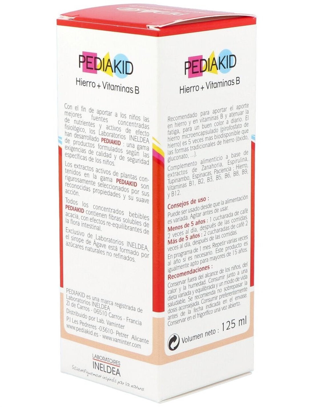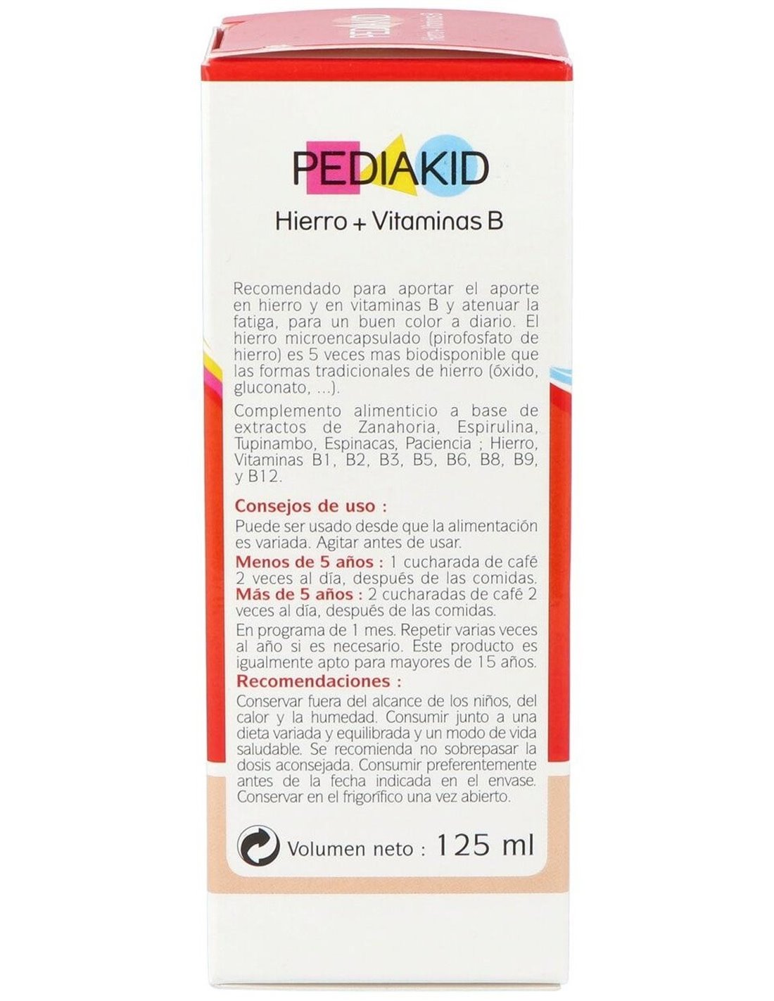 Optimiza la ingesta en Hierro. Rico en hierro y vitaminas B, que ayudan a reducir la fatiga. El hierro ayuda a transportar oxígeno a las células. Una tez pálida, fatiga, puede ser el primer signo de deficiencia de hierro. Si los niños son candidatos a esta deficiencia, los adolescentes tienen un riesgo especialmente alto.Pediakid ® Hierro + Vitamina B, optimiza el consumo de hierro para luchar contra la fatiga. Su fórmula perfectamente asimilable con hierro microencapsulado para optimizar el aporte de hierro en niños sin sabor o problemas de olor, y sin alteración del sistema digestivo. Las vitaminas del grupo B, trabajan sinérgicamente para promover la absorción y utilización del hierro por el organismo.Pediakid ® Hierro + Vitamina B también contiene Spirulina, zanahoria, espinaca, tupinambo y Paciencia, tónicos fitonutrientes.El Néctar de Agave está recomendado especialmente para los niños, ya que está hecha de azúcares naturales, sin refinar de bajo indice glucémico. Las fibras de acacia potencian los beneficios del agave. Tienen una actividad prebiótica favorable para el intestino y la fortaleza del organismo. Composición activa por 20 ml: