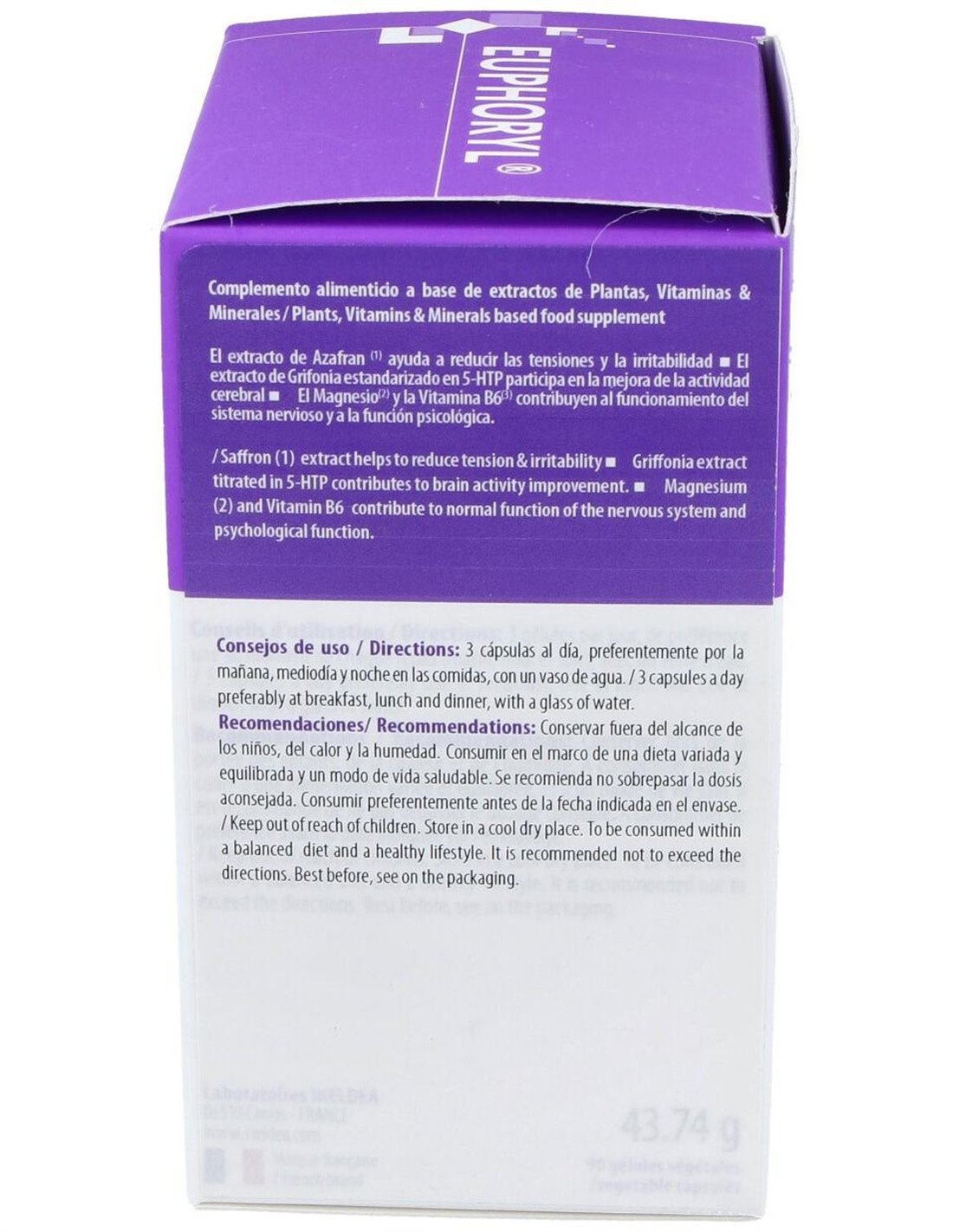 El producto está elaborado con ingredientes seleccionados para asegurar una composición homogénea y estable. Su presentación en envase con 90 cápsulas permite un suministro adecuado para un uso continuado. Ins Euphoryl Safranal 5Htp es adecuado para quienes buscan un complemento que se adapte a un estilo de vida equilibrado.