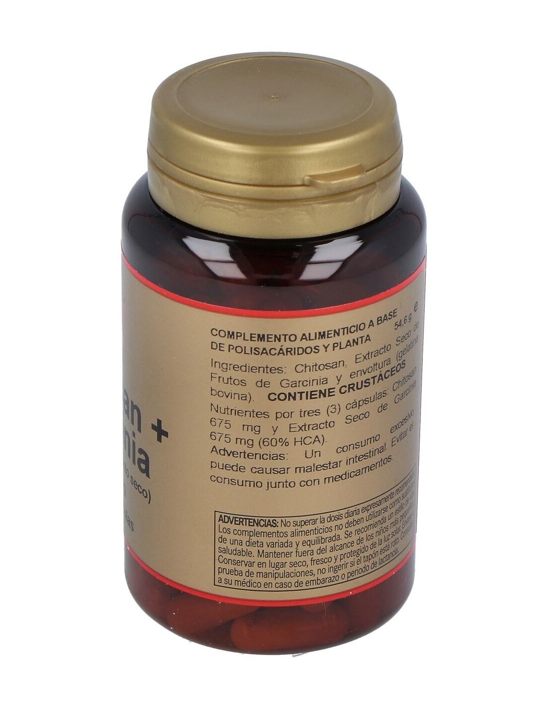 Suplemento con chitosán y garcinia para apoyar el mantenimiento del peso en el marco de un estilo de vida saludable.