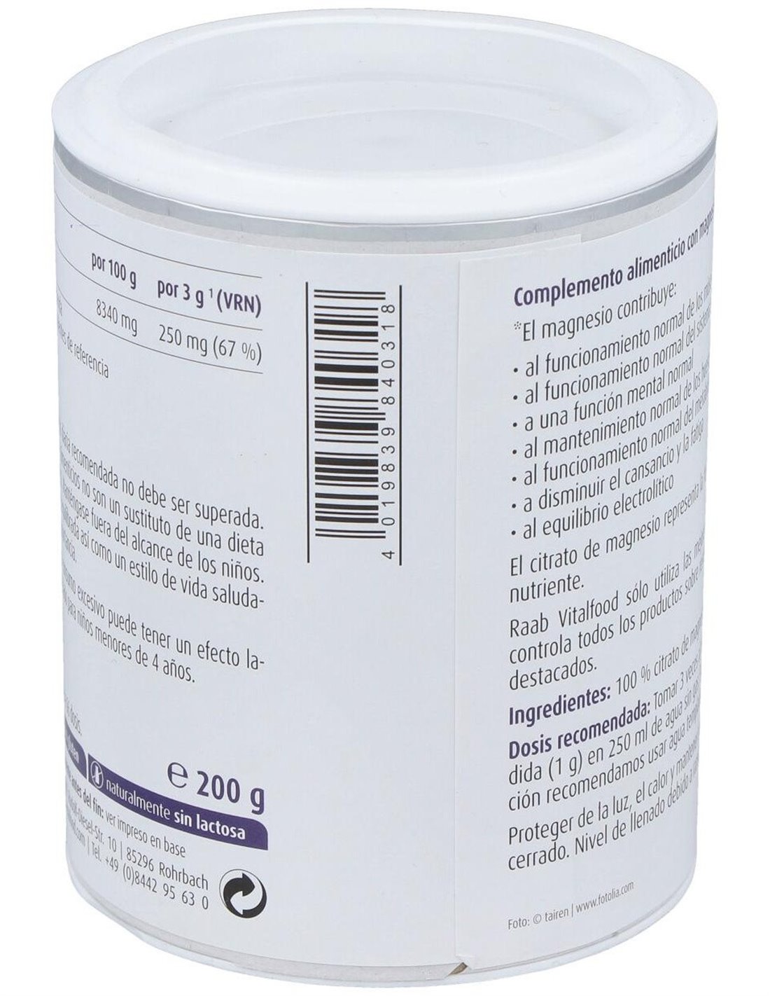 Magnesio citrato polvo, 200g de Raab Vitalfood