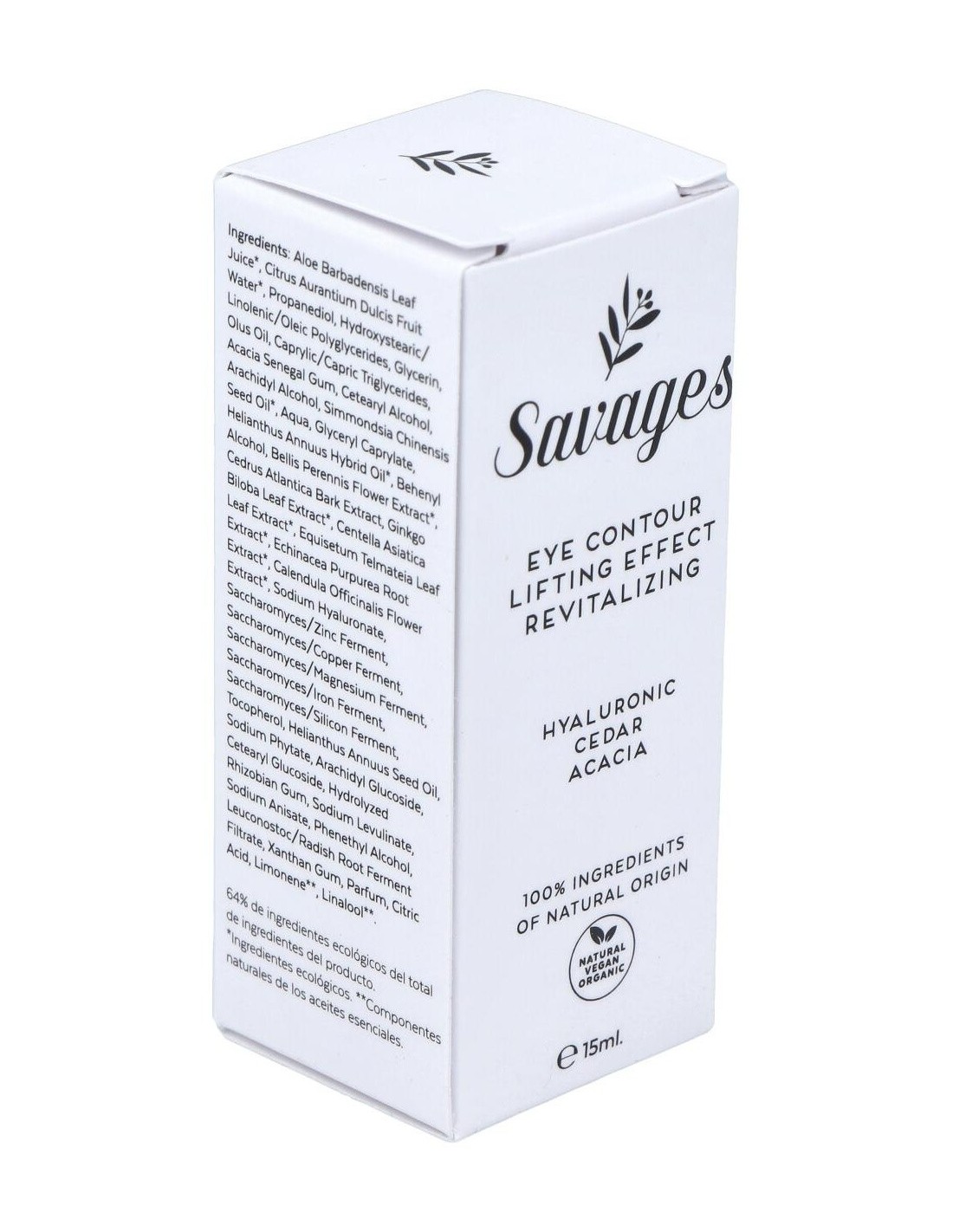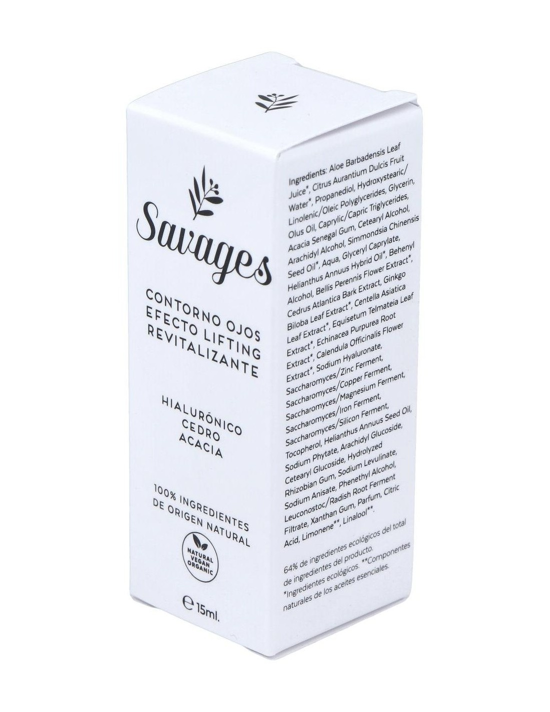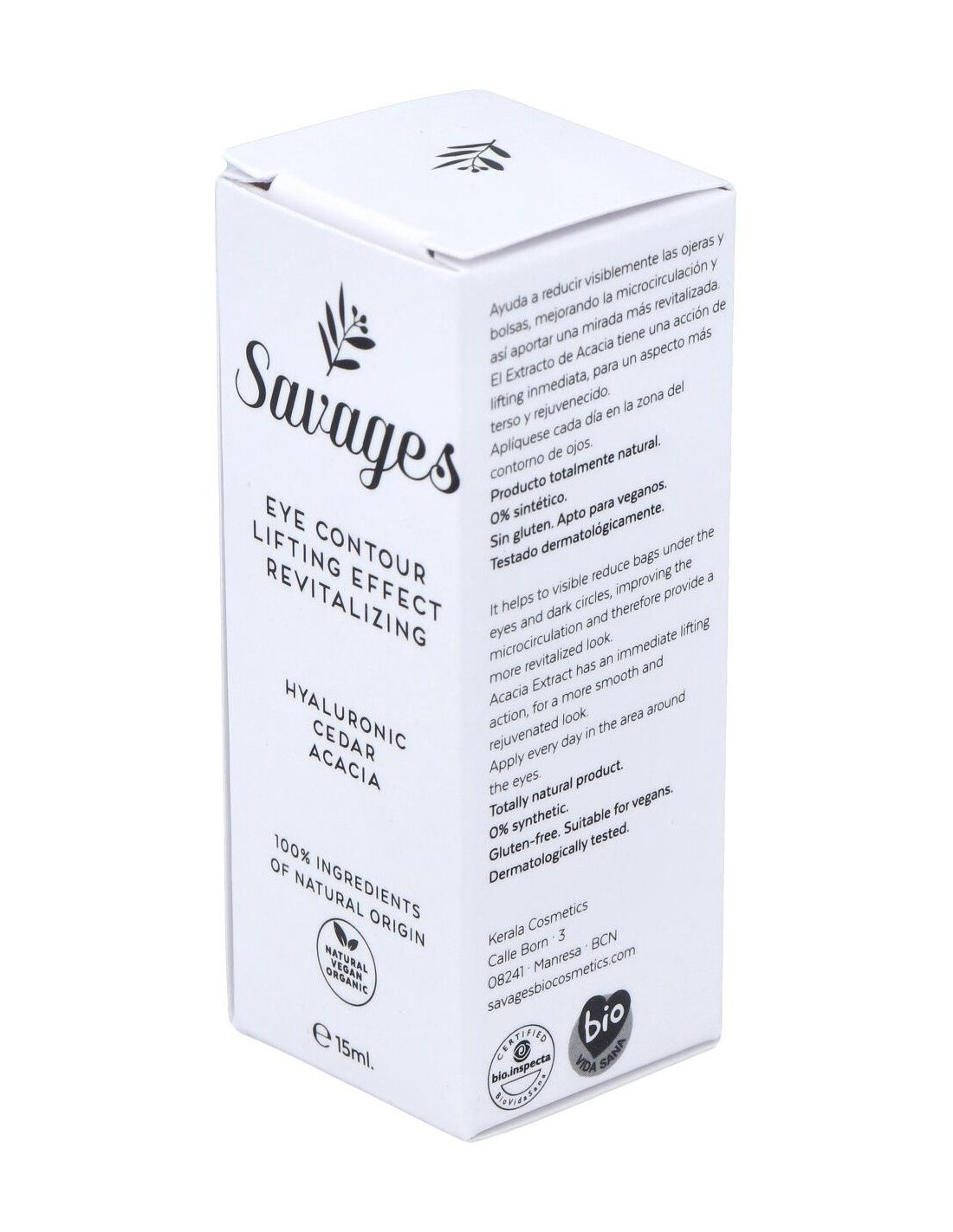 Con extracto de Cedro de acción muy potente a nivel antioxidante y descongestionante, ayuda a reducir visiblemente las ojeras y bolsas, mejorando la microcirculación y así aportar una mirada más revitalizada. Cosmético natural y ecológico certificado por Bio.inspecta-Asociación Vida Sana. Producto apto para veganos y no testado en animales.