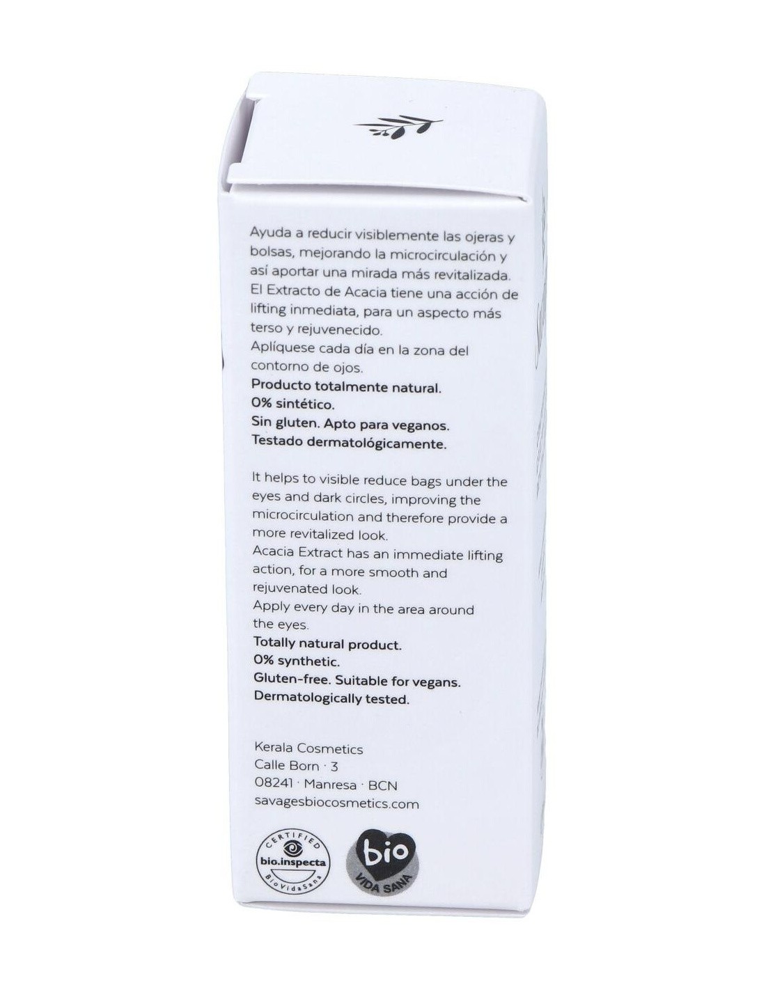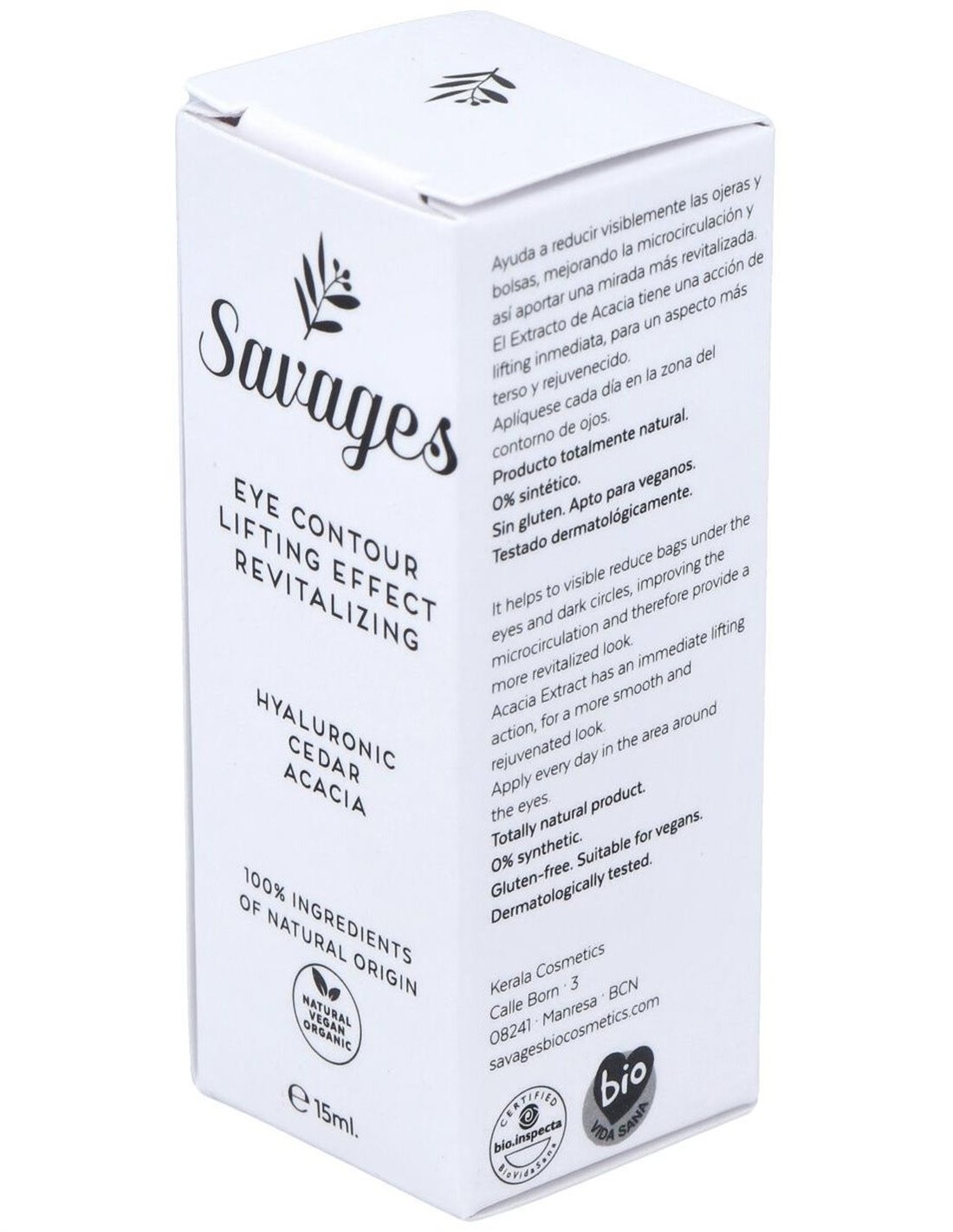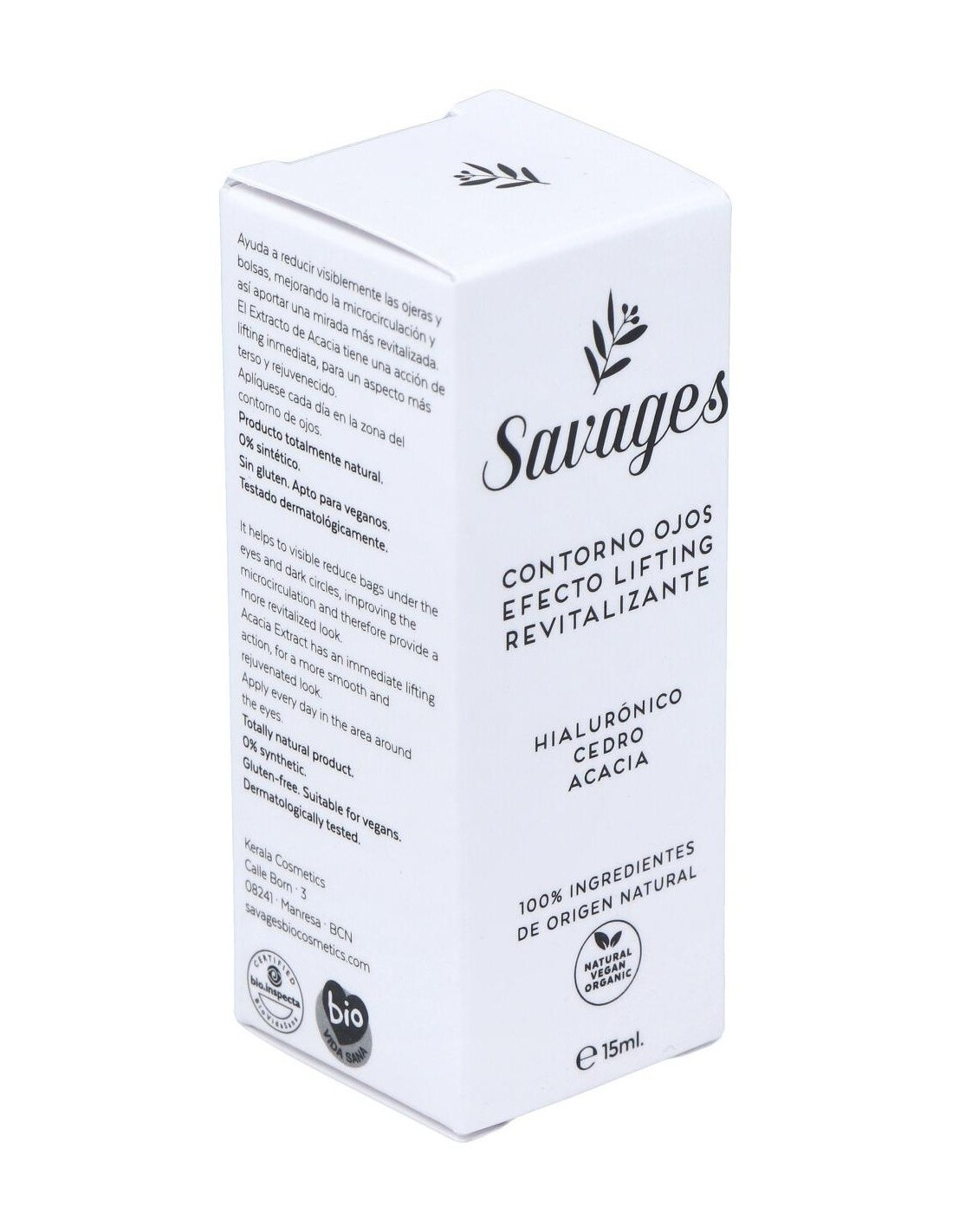 Con extracto de Cedro de acción muy potente a nivel antioxidante y descongestionante, ayuda a reducir visiblemente las ojeras y bolsas, mejorando la microcirculación y así aportar una mirada más revitalizada. Cosmético natural y ecológico certificado por Bio.inspecta-Asociación Vida Sana. Producto apto para veganos y no testado en animales.