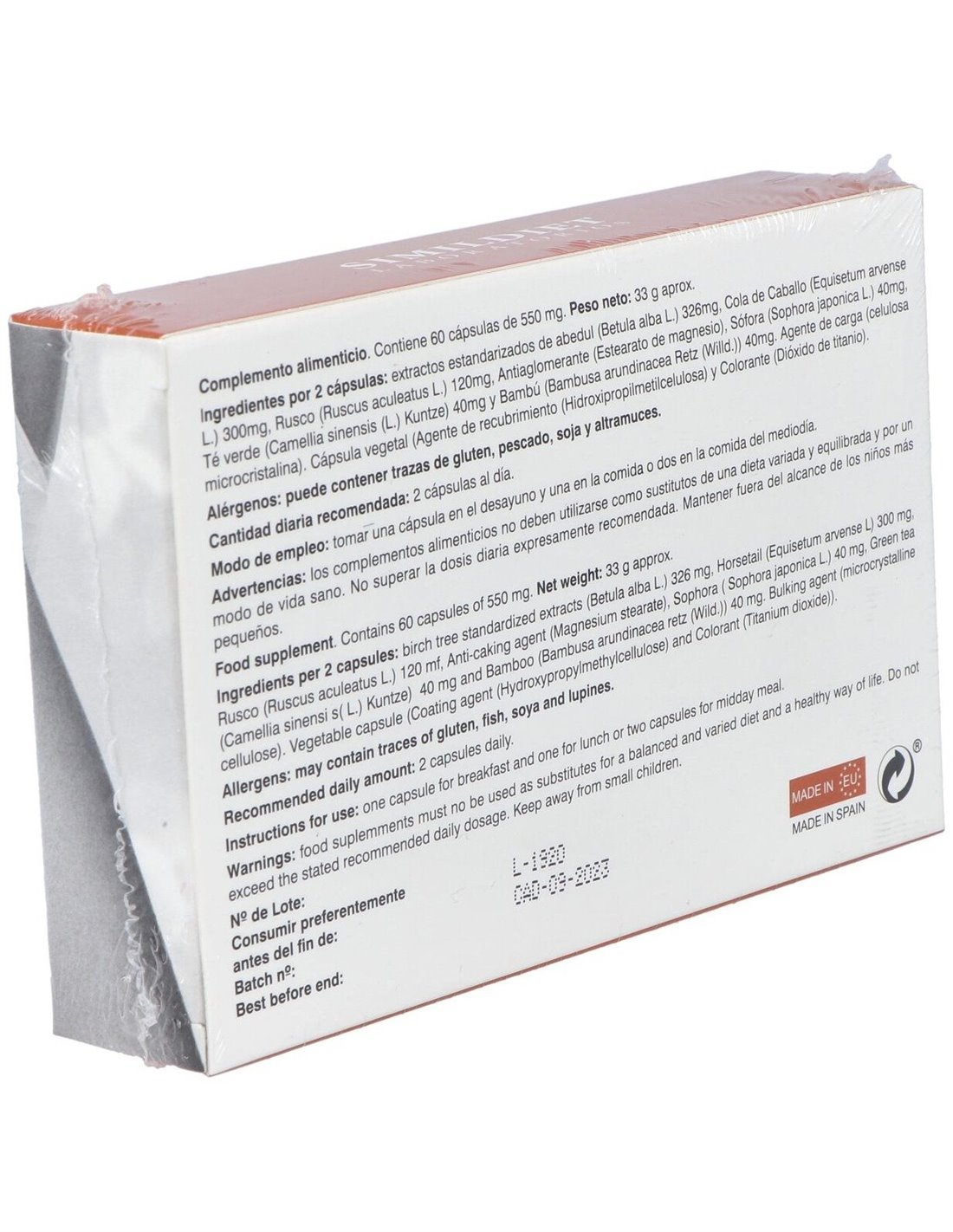 Abedul, Cola de caballo, Rusco, Rutina, Té verde, Bambú. Excipientes: Celulosa microcristalina, Estearato de magnesio.