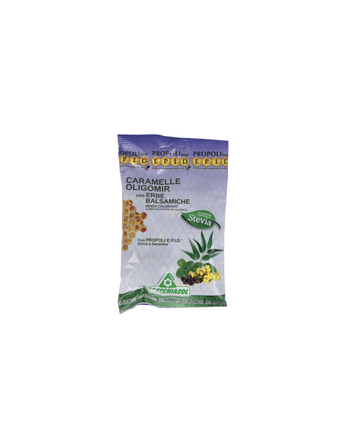 Extracto seco de Própoleo E.P.I.D.®, extracto de Rosa Canina (caramelos con Rosa Canina), plantas silvestres (caramelos con Hinojo, Mentha piperita, Orégano), Mentol, Eucaliptus a.e., Drosera e.f., Erisimo e.f., Mirto a.e. (Oligomir caramelos), extractos de Limón y Melisa (caramelos con Limón y Melisa). Con Glucósidos de Steviol, Isomaltosa y neohesperidina.