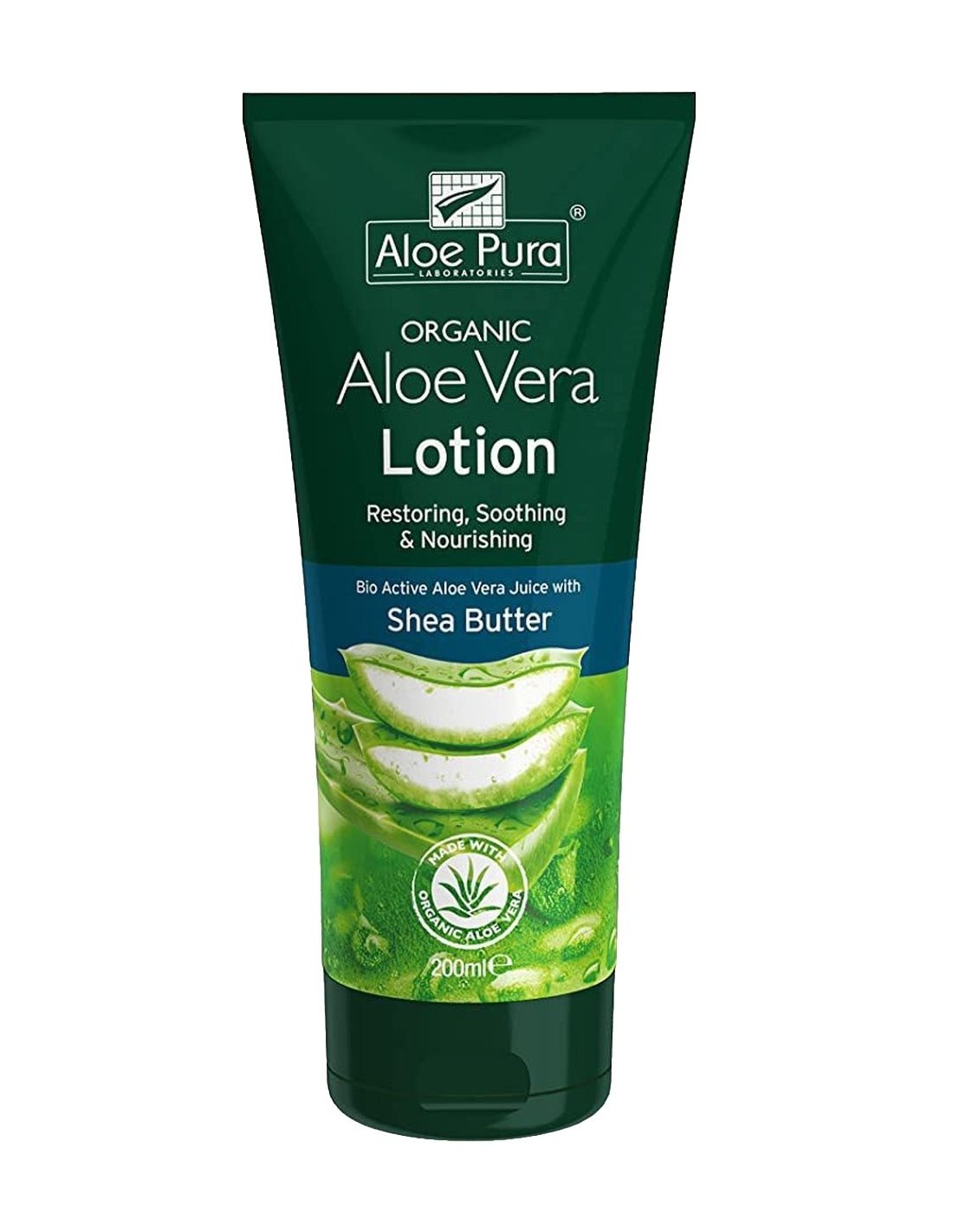 Loción Corporal de Aloe Vera de Aloe Pura es un producto que se produce a partir del jugo de Aloe Vera, capturando la máxima actividad nutricional de la planta de Aloe Vera (Aloe barbadensis). Esta loción calmante nutre, calma y puede ayudar a restaurar la piel seca y dañada. Se puede aplicar sobre estrías, cicatrices y pieles secas, agrietadas y expuestas al sol.Ingredientes (INCI):Aloe Barbadensis (Aloe Vera) Jugo de Hoja, Triglice´ridos Capri´licos/Capric, Glicerina, Alcohol Cetearyl, Cera Alba (cera de abejas), Glucoside lauril, Poligliceril-2 Dipolyhidroxitearate, Butyrospermum Parkii (manteca de karite´), Theobroma Cacao Seed Butter (Manteca de las semillas del a´rbol del cacao), Agua, Acetato de tocoferilo, Palmitato de retinilo, Hialuronato de sodio (a´cido hialuro´nico), A´cido Glycyrrhetinic, Melilotus Officinalis (dulce clover) Extracto de flor, Extracto de hoja de Malv a Sylvestris (malva), Extracto de flor de Chamomilla Recutita (Matricaria), Phenoxyethanol, Sorbato Pota´sico, A´cido Benzoico.Modo de empleo:Aplicar generosamente sobre la piel. Repita tantas veces como sea necesario. Adecuado para usar en todo el cuerpo (supervisar a los niños pequeños).Presentación:Envase de 200 ml.Recomendaciones y advertencias:Apto para veganos. No contiene perfumes, colorantes, aditivos naturales, SLS ni parabenos. No para uso interno. Evitar contacto visual. En caso de contacto accidental, enjuague con agua.