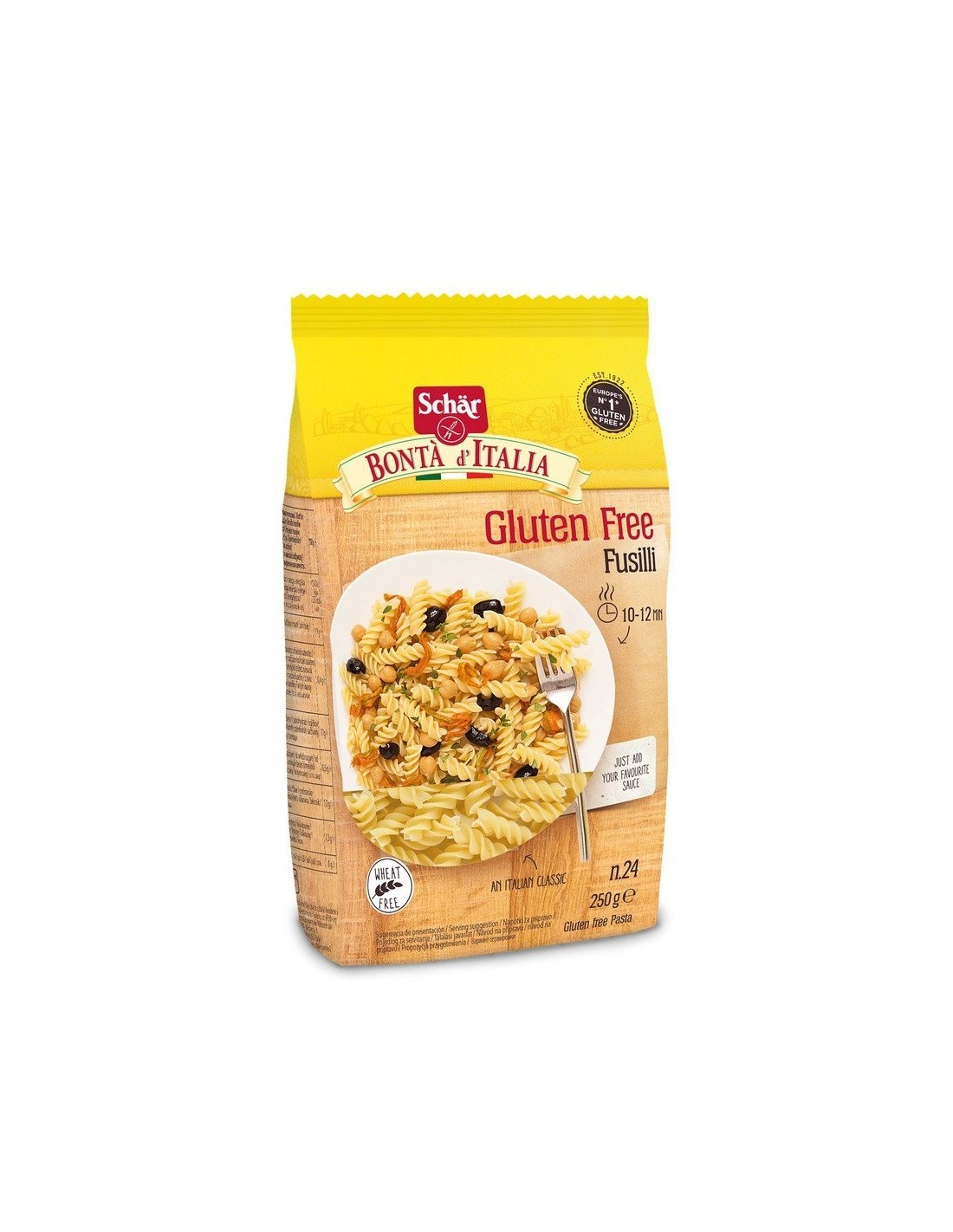 La Pasta Fusilli de Schar es una pasta sin gluten diseñada para personas con intolerancia o sensibilidad al gluten. Ofrece una textura firme y sabor tradicional gracias a su receta especial y ingredientes seleccionados.