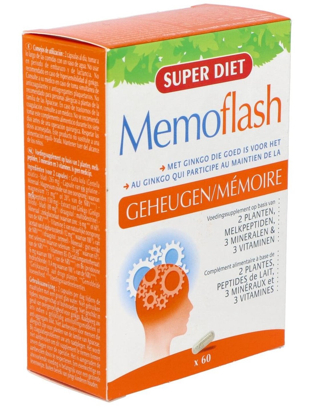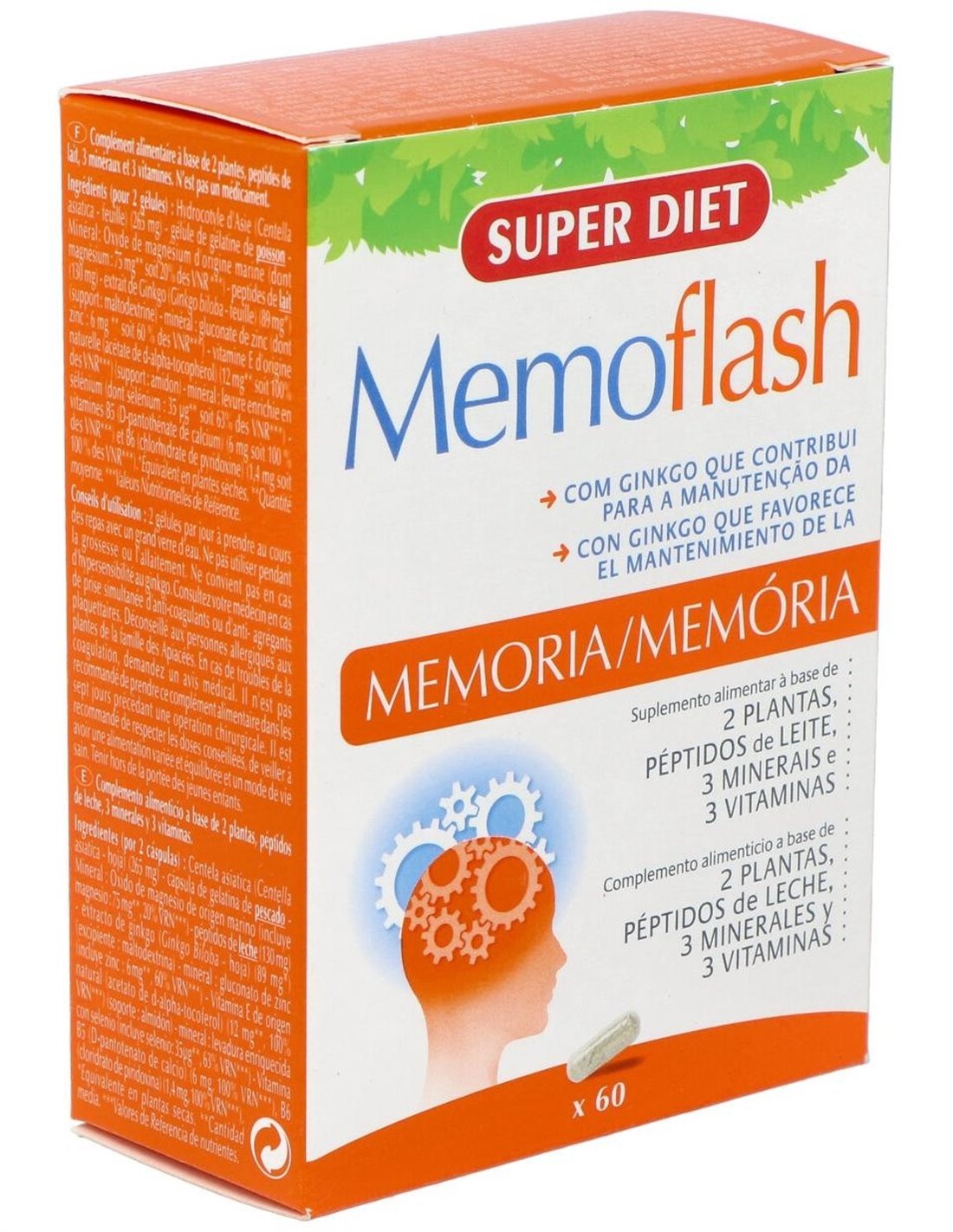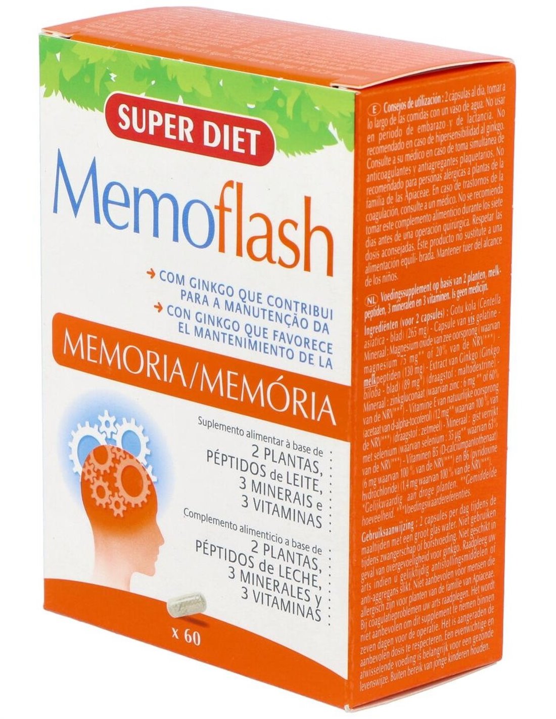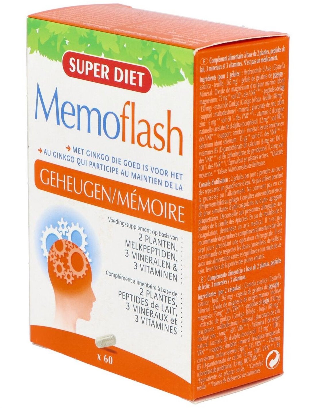 Centella Asiática (265 mg) de gelatina de pescado Extracto de aguas saladas ricas en magnesio de origen marino (oxido e hidróxido de magnesio) (75 mg) -Péptidos de leche (130 mg) Extracto de Ginkgo (89 mg) (soporte: maltodextrina) Mineral : gluconato de zinc (6 mg) Vitamina E de origen natural (12 mg (soporte: almidón) Mineral : levadura enriquecida con selenio (35 mg) Vitaminas B5 (6 mg) y B6 (1,4 mg)