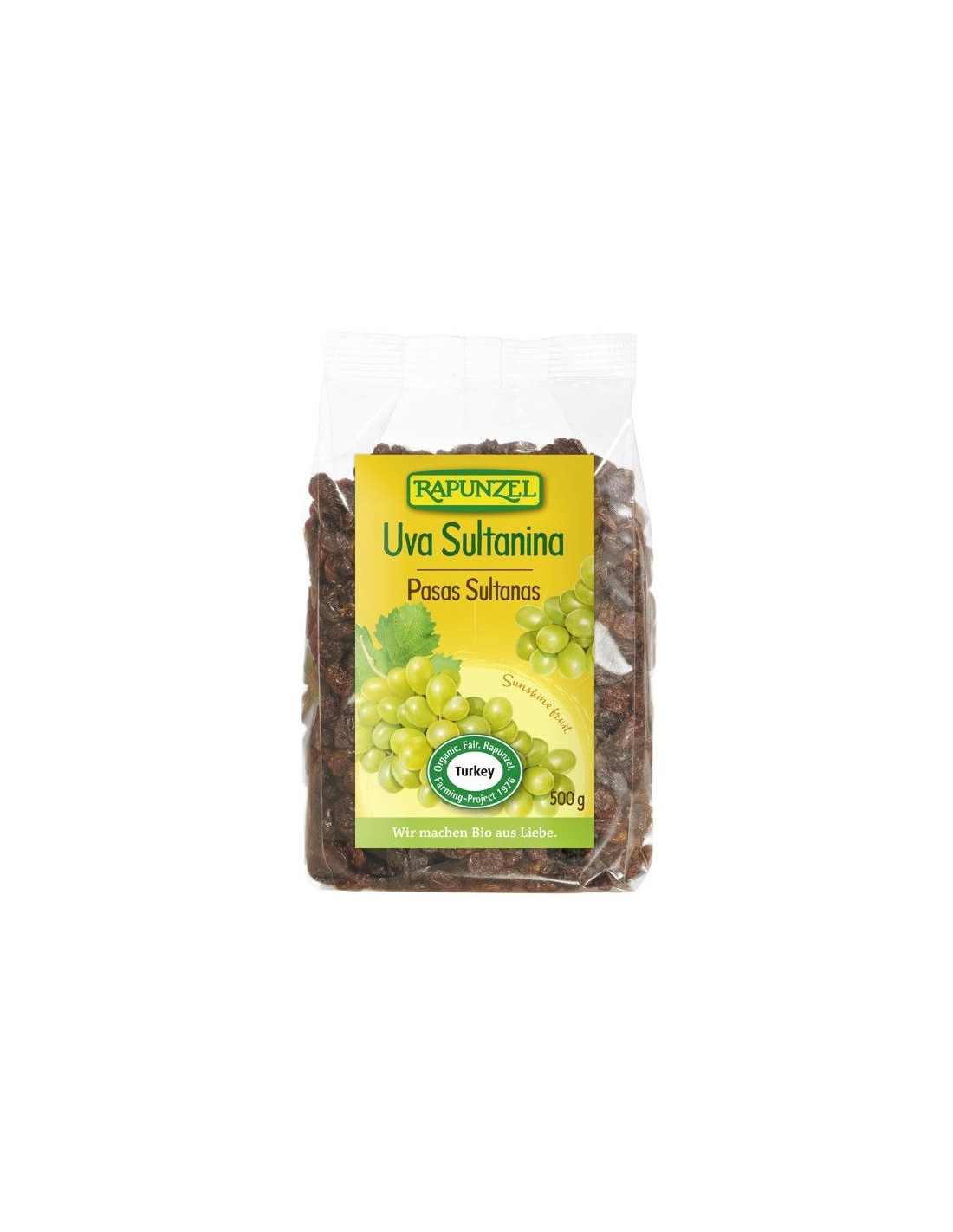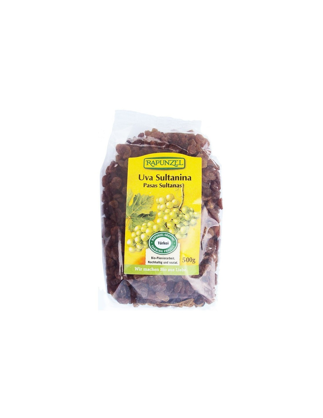 Ingredientes:Pasas sultanas**, aceite de girasol*. (*) De agricultura biológica. (**) De agricultura biodinámica.Valor nutricional por 100 gramos: