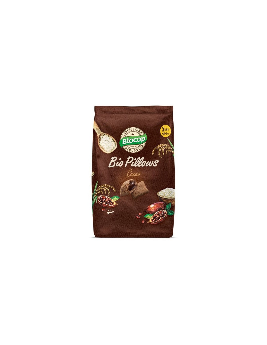 Ingredientes:Harina de arroz* 47.6%, crema de cacao* 30% (azúcar de caña*, aceite de girasol*, cacao en polvo* 25%, manteca de cacao*), azúcar de caña*, harina de maíz* 7%, cacao en polvo desgrasado* 4%, aceite de girasol*. (*) De cultivo ecológico.Valor nutricional por 100 gramos: