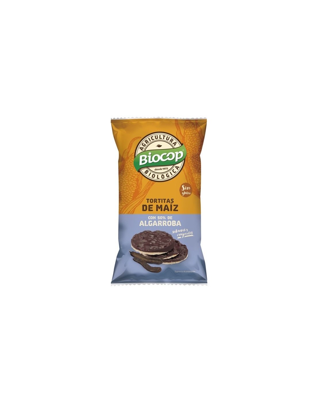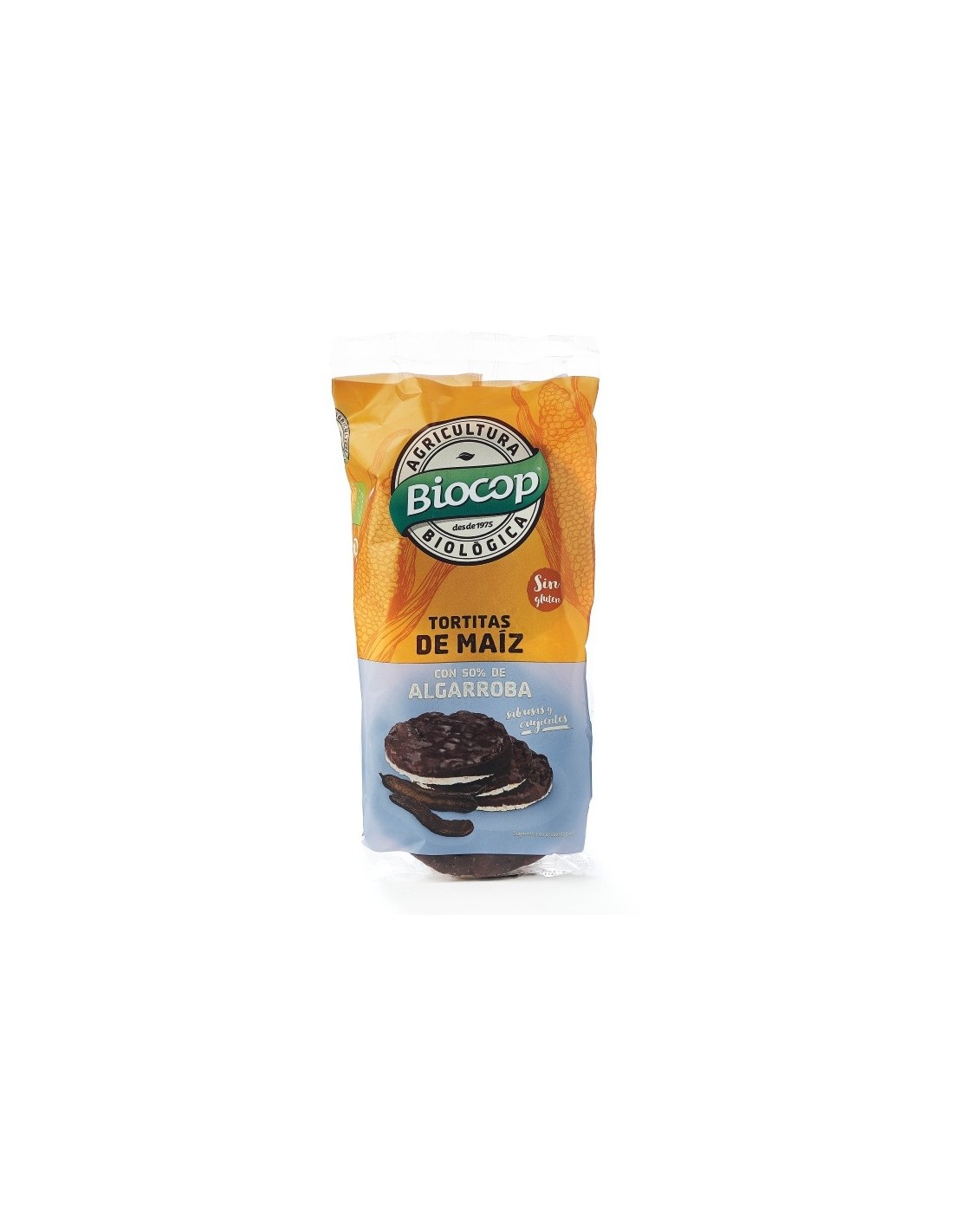 Ingredientes:Cobertura de algarroba* 50% (manteca de cacao*, algarroba en polvo* , harina de maiz*,harina de arroz* arroz en polvo*, harina de SOJA*, emulgente: lecitina de girasol), tortita de maíz* (maíz* 50%). (*) De cultivo ecológico.Valor nutricional por 100 gramos: