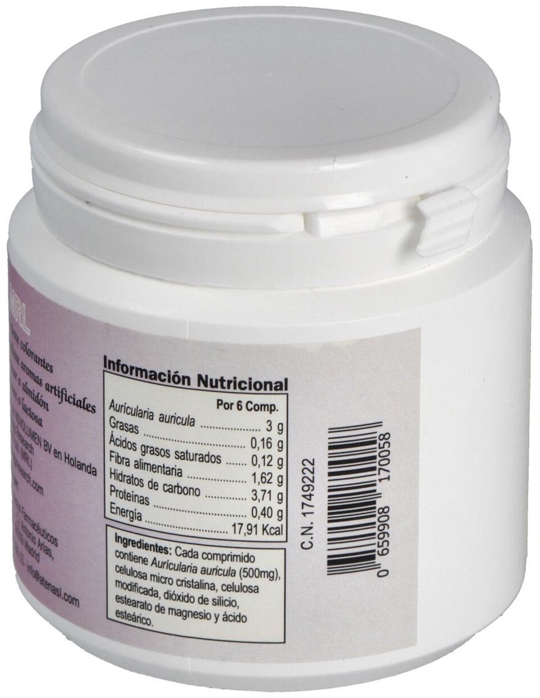 Auricularia-Mrl 500Gr. 90Comp. de ATENA es un suplemento natural elaborado con extracto de Auricularia, conocido por sus propiedades antioxidantes y beneficios para el sistema inmunológico. Cada envase contiene 90 comprimidos que facilitan su consumo diario, aportando bienestar y energía. Ideal para quienes buscan cuidar su salud de forma natural y efectiva. Producto de alta calidad, confiable y fácil de incorporar en tu rutina diaria.