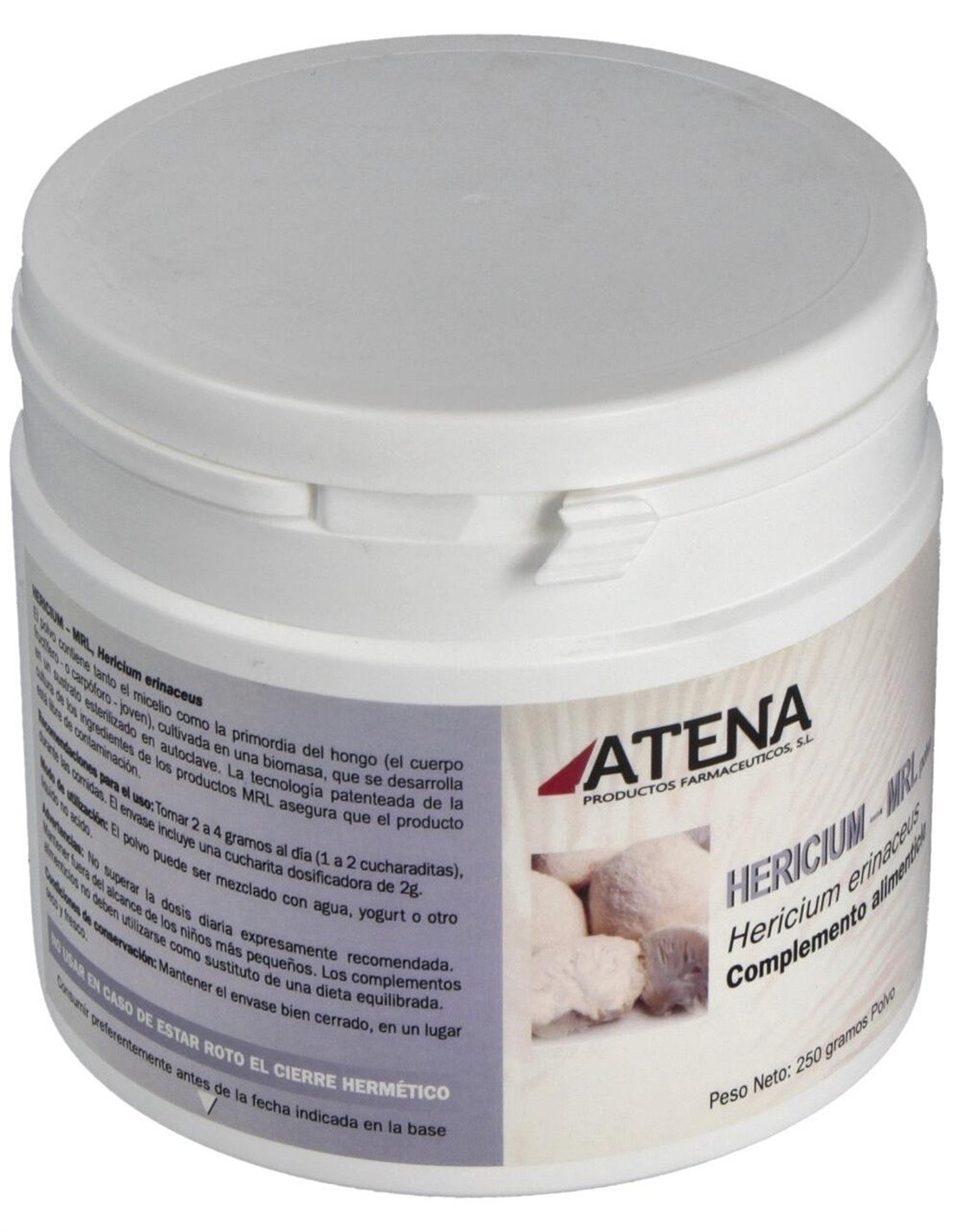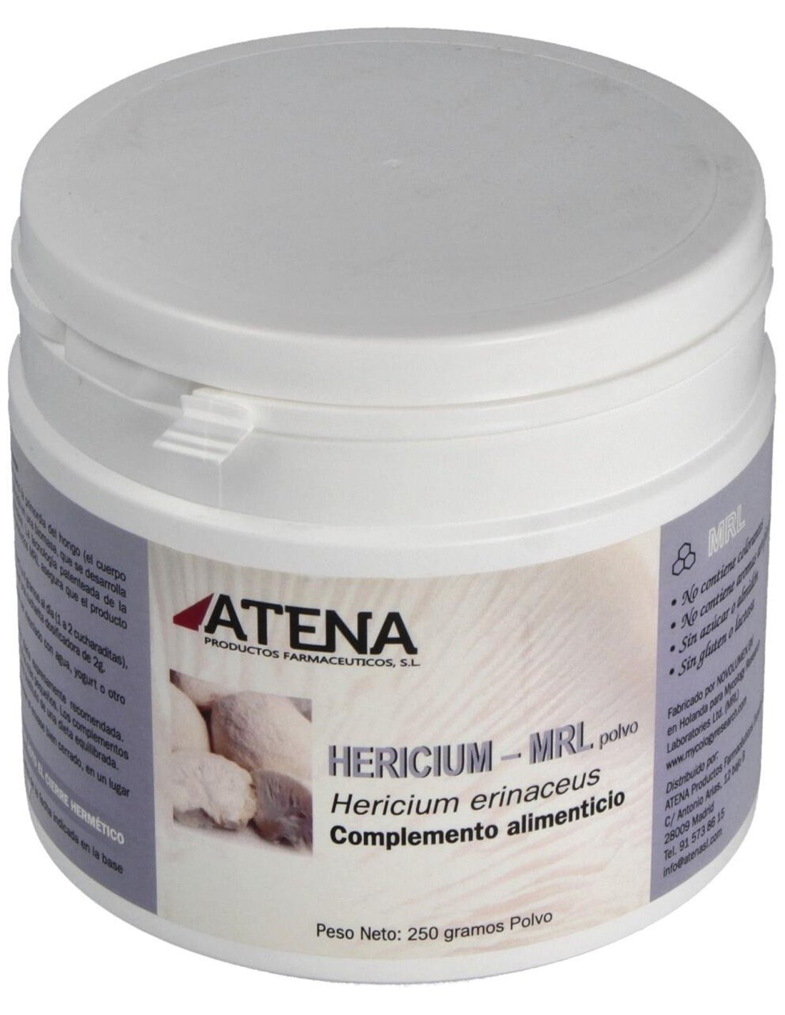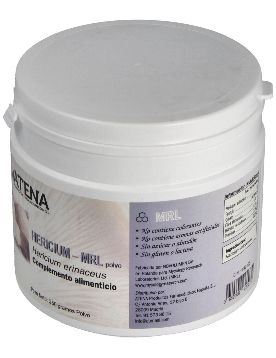 Hericium-Mrl 250Gr en polvo de ATENA es un suplemento natural elaborado con extracto puro de Hericium, conocido por sus propiedades para apoyar la salud cerebral y el sistema nervioso. Ideal para quienes buscan mejorar la concentración, la memoria y el bienestar general. Su presentación en polvo facilita su incorporación en bebidas o alimentos, ofreciendo una opción práctica y natural para el cuidado diario. Calidad garantizada por ATENA, una marca confiable en productos saludables.