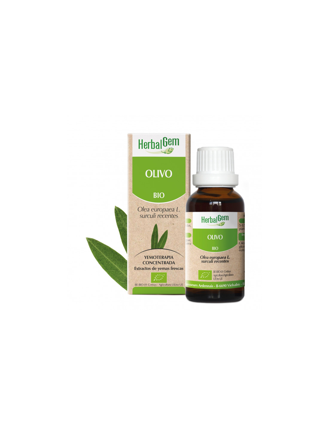 Hojas jóvenes de olivo*, alcohol* (35% vol.), agua, glicerina vegetal.