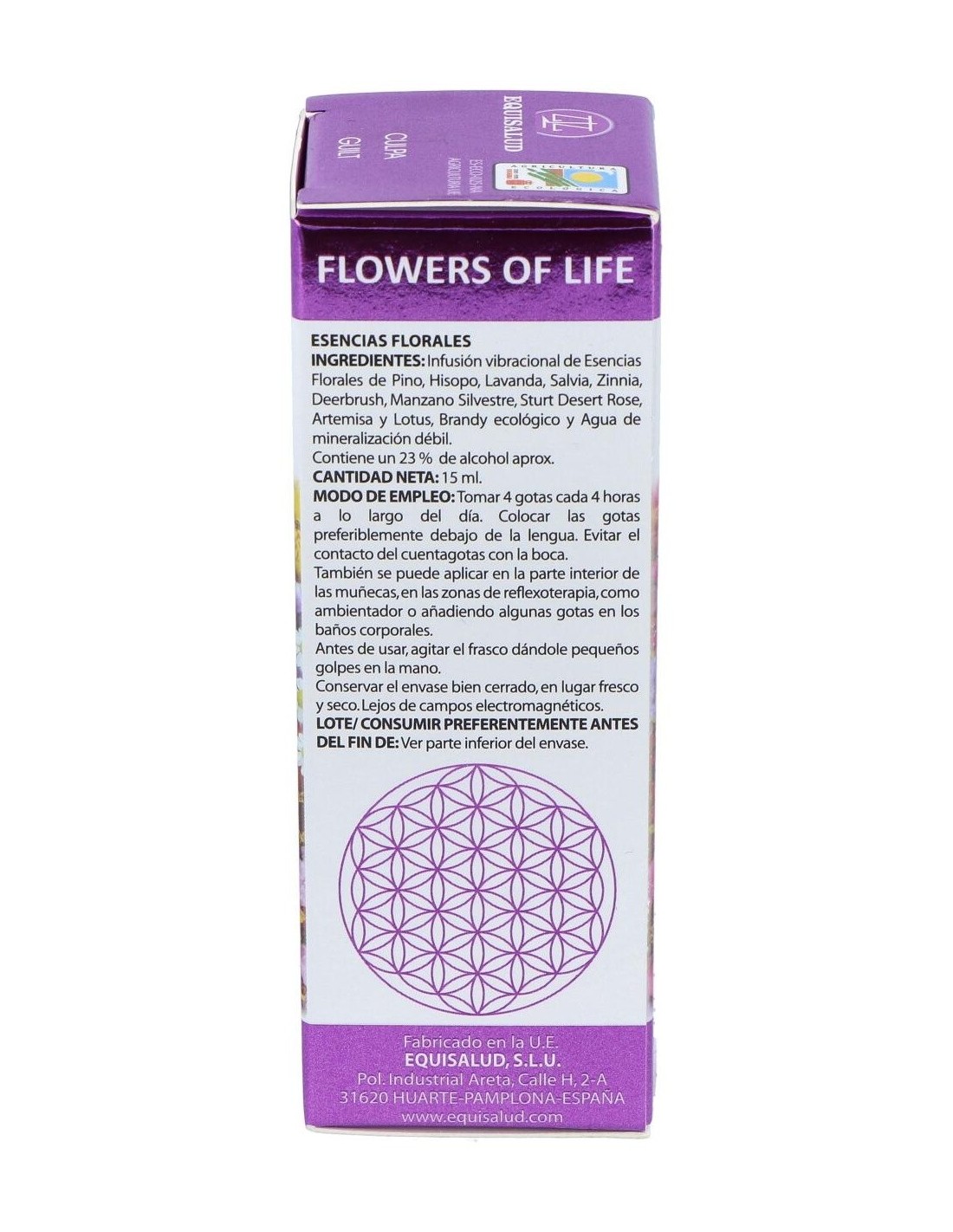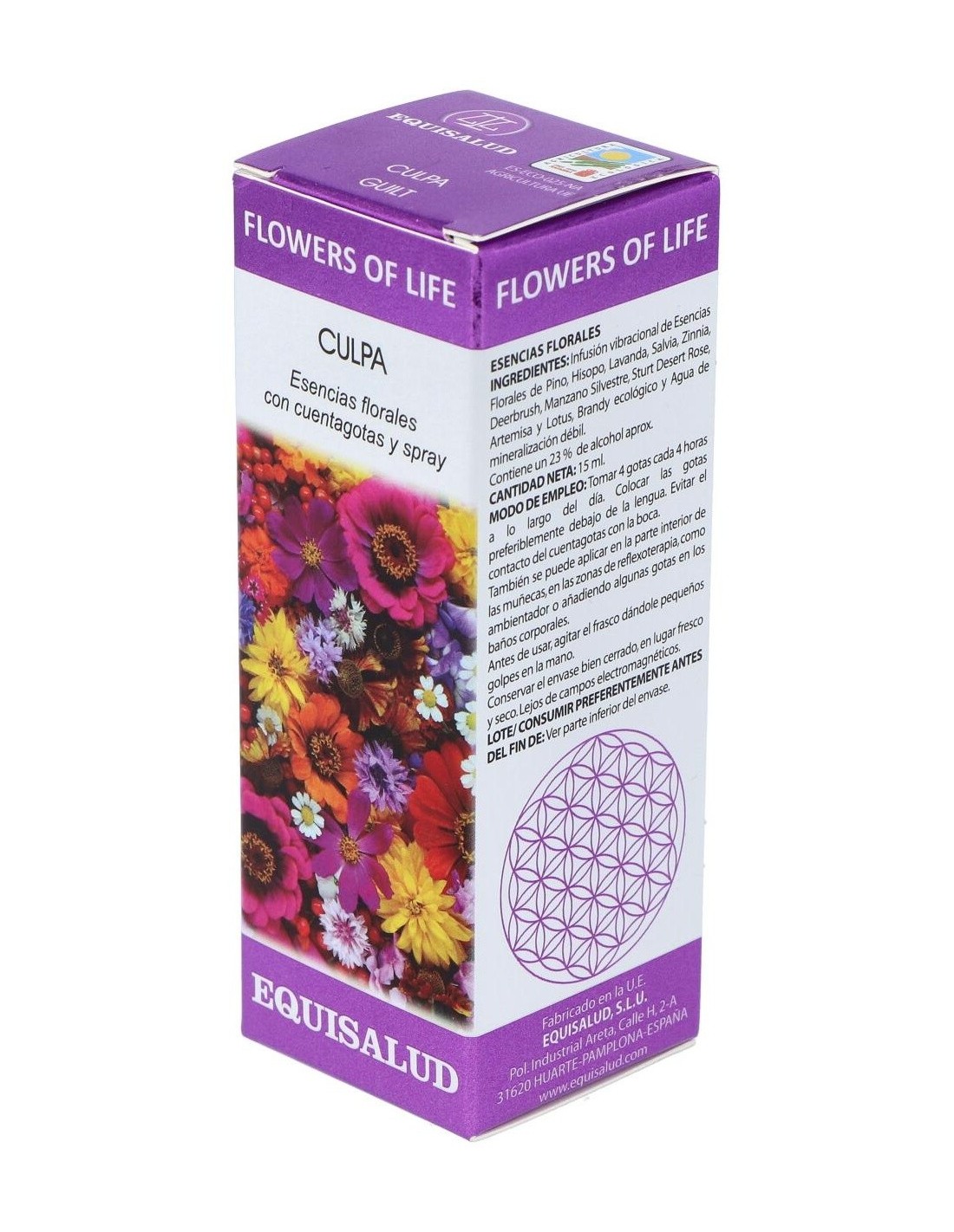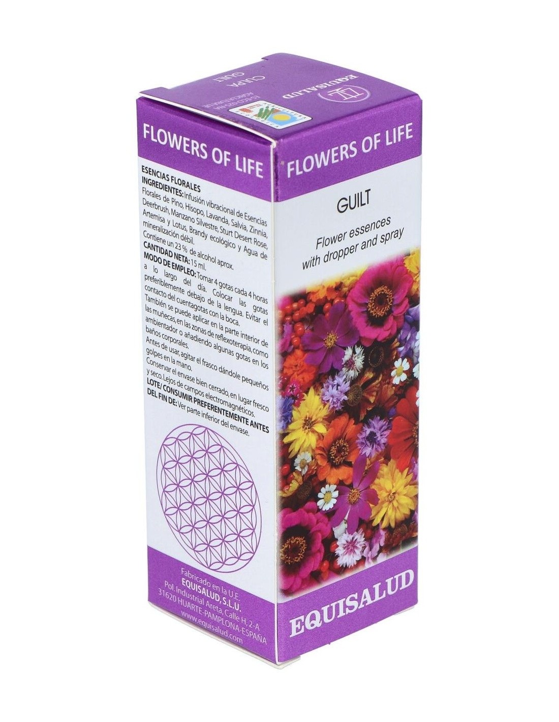 Perdonarse es dejar pasar el propio pasado aprendiendo sus lecciones para no tener que repetirlas. El veredicto interior que lleva al sentimiento de culpabilidad nutre el victimismo que se inscribe, de un modo negativo, en nuestra unidad psicofísica. La necesidad de un genuino perdón es crucial para liberar lo mejor del potencial humano, que se queda retenido con la culpa. La fórmula para la culpa de FLOWERS OF LIFE consigue la sinergia de las mejores esencias de los sistemas florales y la información vibracional de los sistemas adaptativos, para liberarnos de este sentimiento negativo.Indicaciones:Promueve la autoaceptación, el autorreconocimiento y el amor. Contribuye a la liberación de los sentimientos de culpa que generan baja autoestima e inhabilitan la liberación de nuestro potencial. Nos ayuda a asumir con humildad la actitud de aprendices y a considerar nuestros errores como oportunidades de aprendizaje.Composición:Infusión vibracional de esencias florales de Pino, Hisopo, Lavanda, Salvia, Zinnia, Deerbrush, Manzano Silvestre, Sturt Desert Rose, Artemisa y Lotus; brandy ecológico y agua de mineralización débil.Contiene un 23% de alcohol aprox.Modo de empleo:Tomar 4 gotas cada 4 horas a lo largo del día. Colocar las gotas preferiblemente debajo de la lengua. Evitar el contacto del cuentagotas con la boca.También se puede aplicar en la parte interior de las muñecas, en las zonas de reflexoterapia, como ambientador o añadiendo algunas gotas en los baños corporales.Presentación:Frasco de 15 ml.