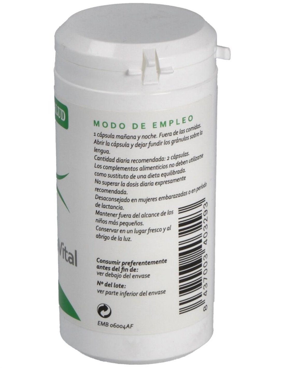 Modo de empleo:Tomar 1 cápsula por la mañana y por la noche fuera de las comidas.Presentación:Bote de 60 cápsulas.