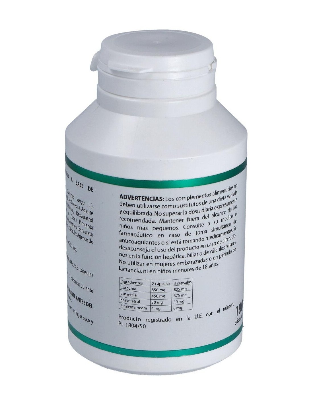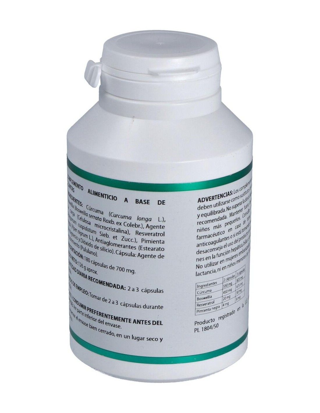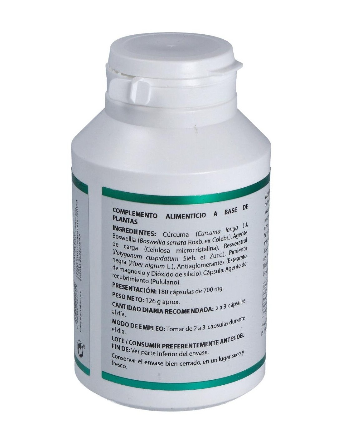 170 mg de extracto nebulizado de cúrcuma (Curcuma longa, rizoma, 95% Curcumina).