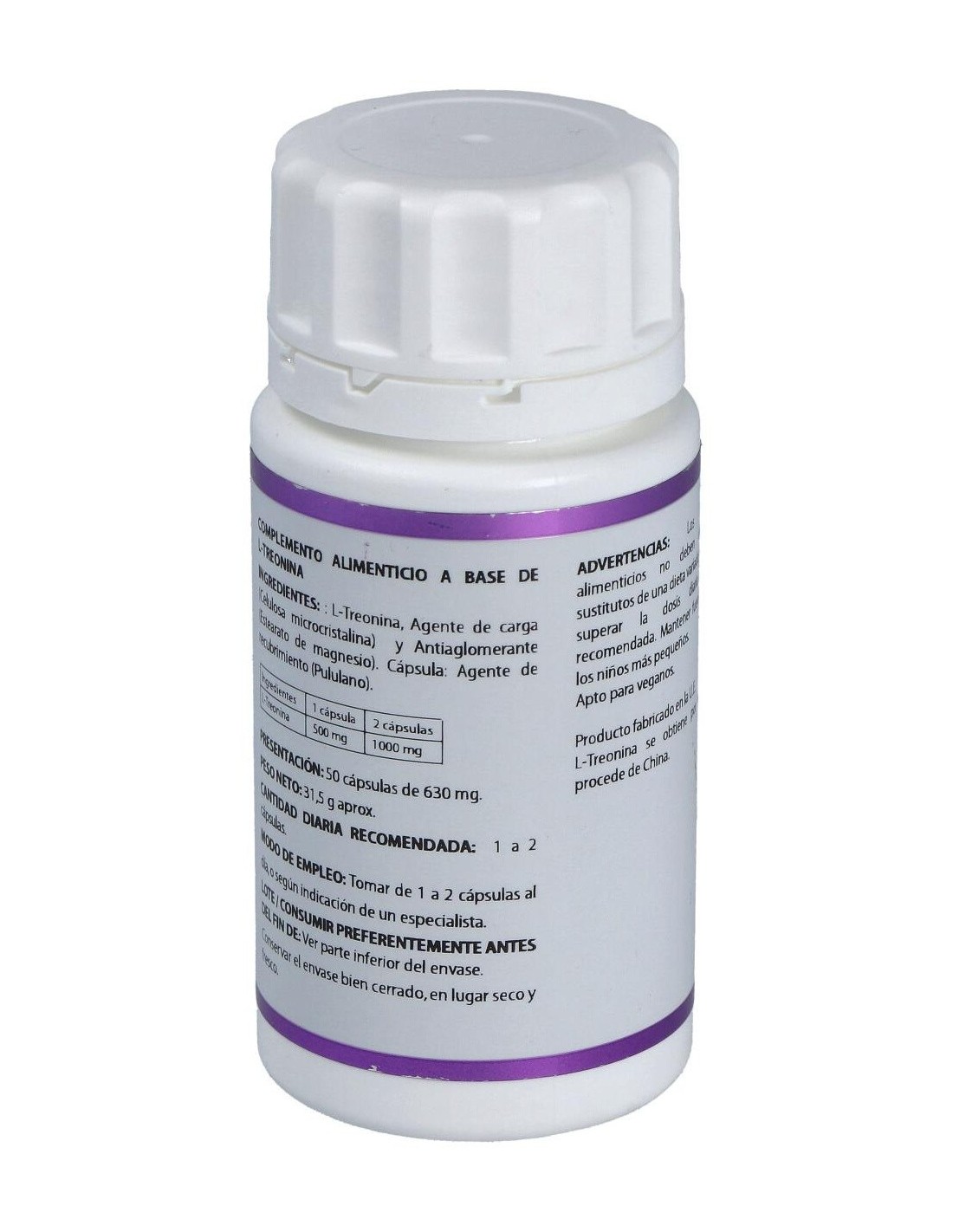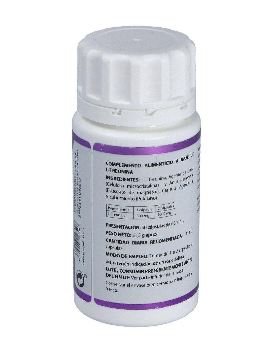 Complemento alimenticio a base de L-treonina que contribuye a la formación de proteínas, colágeno, elastina y esmalte dentario. Es necesario para la producción de los neurotransmisores y, por tanto, para la salud del sistema nervioso. Formulado con L-treonina que ayuda a metabolizar las grasas y a mejorar la síntesis de colágeno natural. Interviene en el ciclo de formación de elastina y ayuda en la formación de elastina. Contribuye a aumentar la producción de enzimas digestivas y a regular el sistema nervioso. Los complementos alimenticios no deben utilizarse como sustitutos de una dieta variada y equilibrada. No superar la dosis diaria expresamente recomendada. Mantener fuera del alcance de los niños más pequeños. 50 cápsulas de 630 mg.